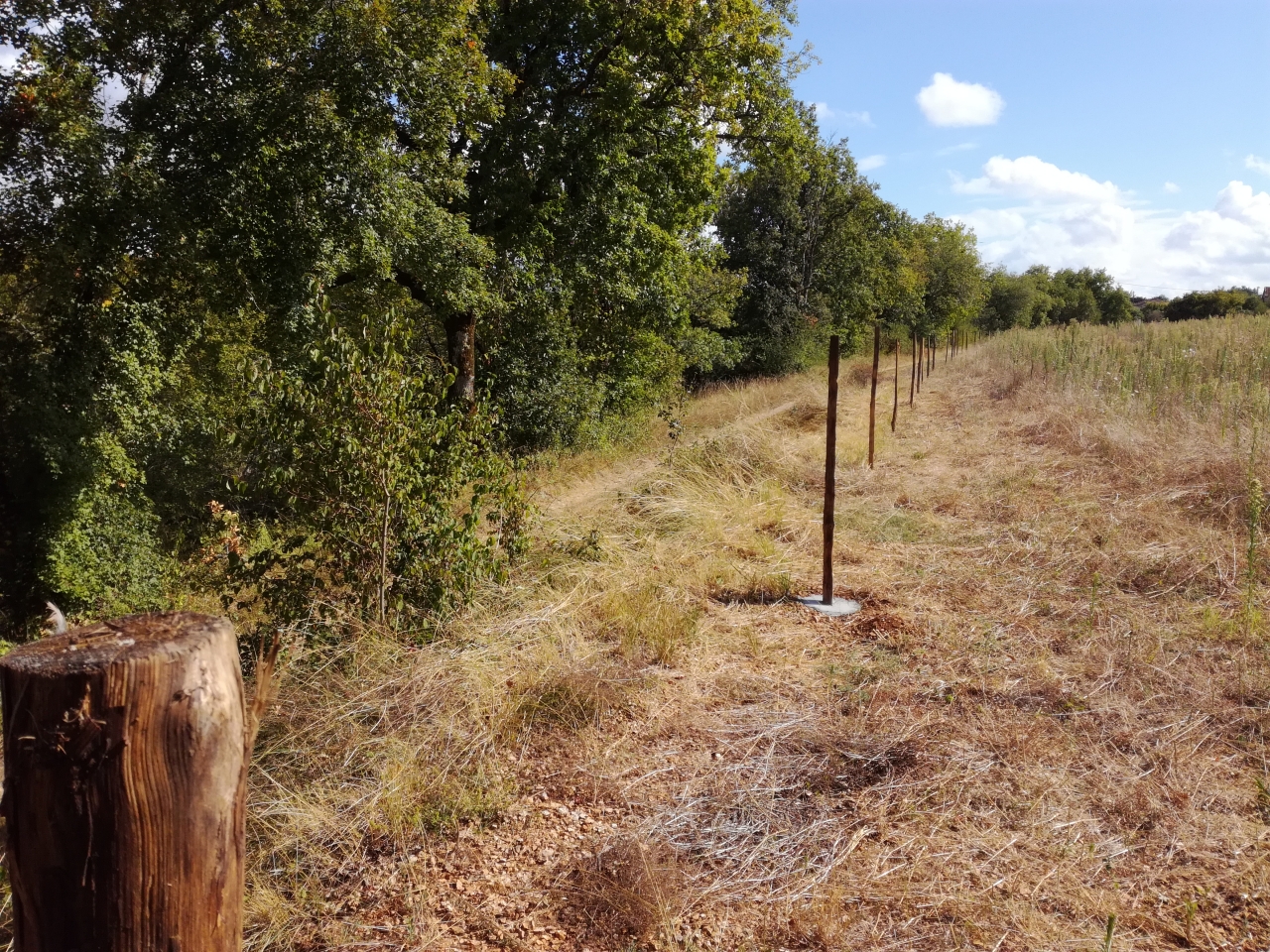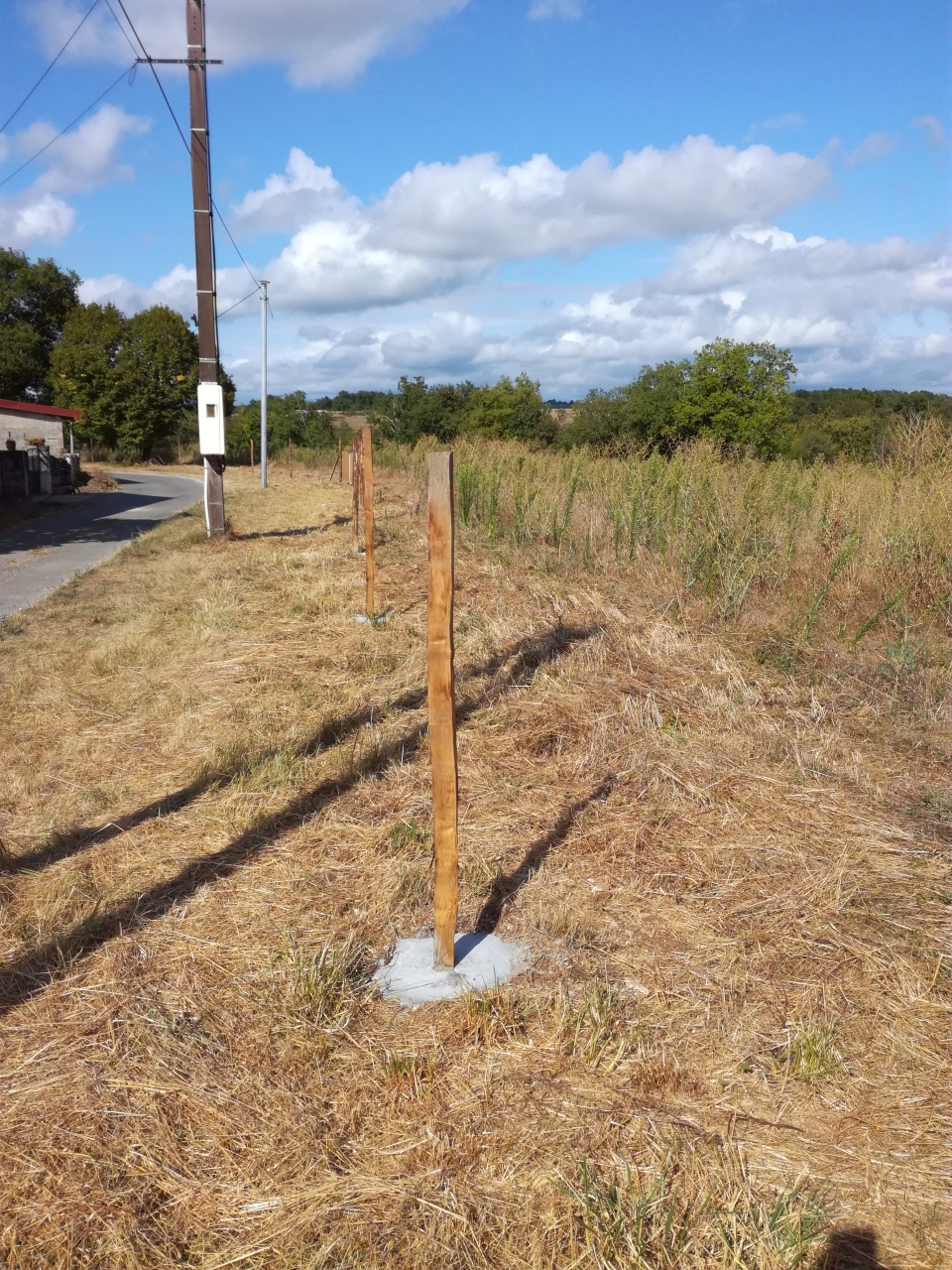 | Dire merci | Chataignier. Ils sont plantés dans la terre mais on a bétonné au niveau du sol pour qu'ils tiennent. Ceux qui sont bétonnés entièrement sont dans la roche directement. Pas eu le choix. À terme, je les remplacerai par des piquets métallique en T je pense. Message édité le 18/08/18 à 23:50 |