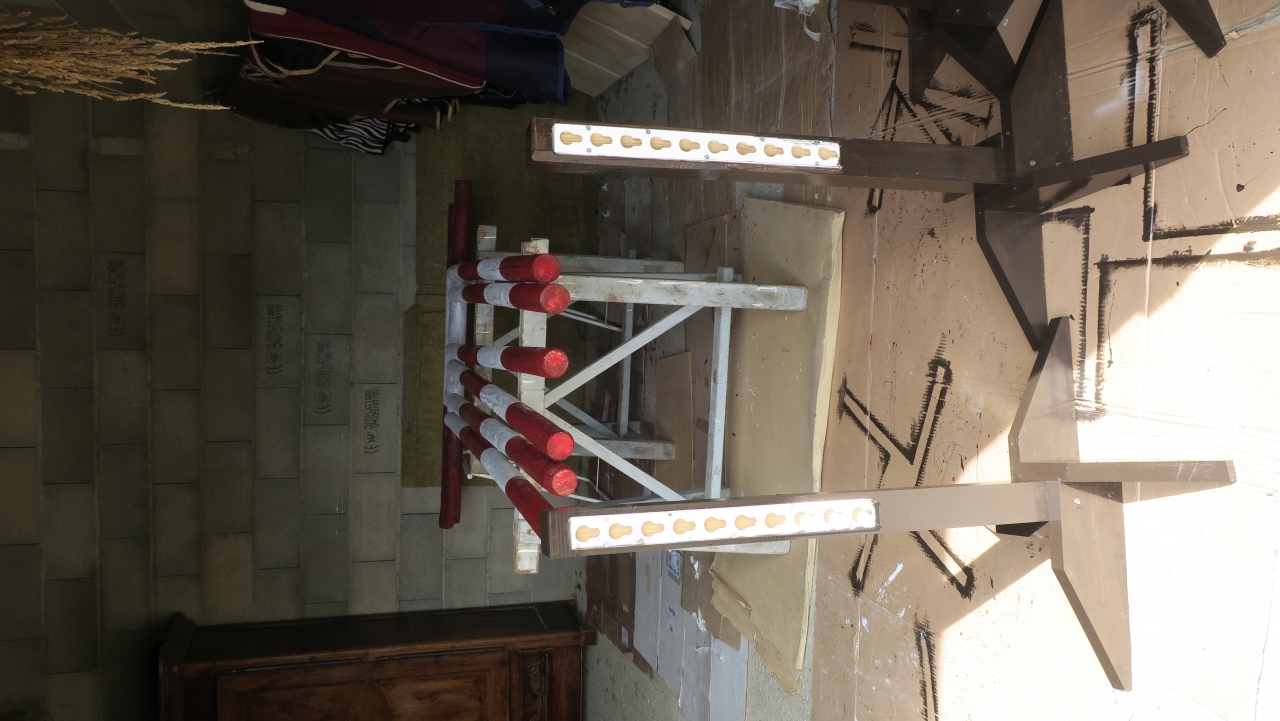 | Dire merci | J'ai trouvé des barres 3m50 (truc FFE) à 8e la barre, et les chevaux y font attention du coup parce que c'est pas ce qu'il y a de plus léger. (sinon le bois à craqué, c'est grave ??? j'ai pas eu le temps de les traiter avant la pluie.....) |