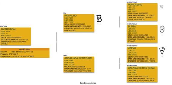 | Dire merci | La grand-mère paternel Eleita est une fille de Xique Xique, étalon Quina qui a très bien reproduit au Brésil. Des photos de lui, ici : Lien![]() Xique-Xique a les mêmes origines que Xaquiro un autre étalon célèbre au Portugal (et dans le monde probablement) pour la qualités de sa production, notamment des allures "sportives" (pour le dressage moderne). ![]() Xaquiro est le père de Spartacus un des étalons les plus à la mode ces dernières années. (élevage PIdwell) ![]() |