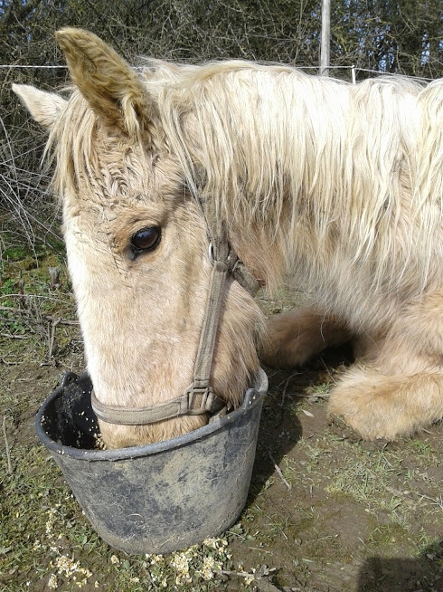 | Dire merci | Bonsoir à tous, voila, mamy Fancy à 29 ans, c'est une quarter à la retraite. Elle vie au pré à l'année, est couverte car à du mal à rester en état. nous avons perdu notre papy le 1er janvier et je pense que ça la travail bien, car elle a perdu de l'état en peu de temps depuis sont départ et on voit bien que moralement c'est plus dur. Elle à d'autres congénère, mais elle fait sa vie de mamy de son coté, ce qu'elle faisait déjà avant le départ de notre papy mais ils restait les deux ensemble. Fancy n'à plus de dents donc elle grappille l'herbe, on lui donne du foin très fin et tendre et je lui préparai une pâté de farine de maïs. Visiblement ça ne lui suffi plus. Nous voulons la complémentez plus, que pensez-vous de cette ration niveau équilibrage: 125g de luzerne déshydrater 100g de tourteau de soja 250g de pulpe de betterave réhydrater 250g d'orge aplati + foin à coter et l'herbe qu'elle grappille cette ration serai donner matin et soir éclairer moi car je n'ai pas l’habitude de ces rations "naturelle". Merci pour vos éclairages ps: Elle est à jour ostéo, ....ect Message édité le 17/01/18 à 19:45 Message édité le 17/01/18 à 19:45 Message édité le 17/01/18 à 19:52 |