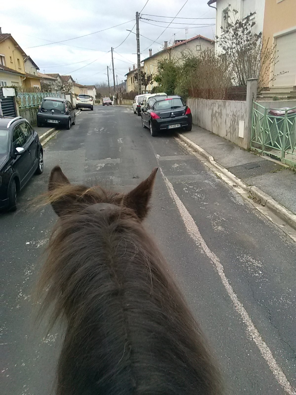 | Dire merci | Histoire de papoter, de râler un peu et de voir si je suis la seule ? Je vis à la campagne et pourtant je n'ai jamais autant fait de cheval "en ville" qu'en ce moment... Mes chevaux sont à la maison et j'habite ds un "quartier" d'une commune... On est en Aveyron, c'est la campagne et pourtant j'ai très peu de "chemins accessibles " à cheval...du coup si je veux aller balader sur des vraies chemins, galoper... C'est minimum 3h de balade et traversée obligatoire de centre ville et mes petites boucles d'1h de la semaine se passent ds mon quartier.... Par ex.. ma balade de cet apm : .Bon du coup mes chevaux passent partout mais moi je commence sérieusement à me lasser... Et vous, d'autres personnes ds mon cas ? |