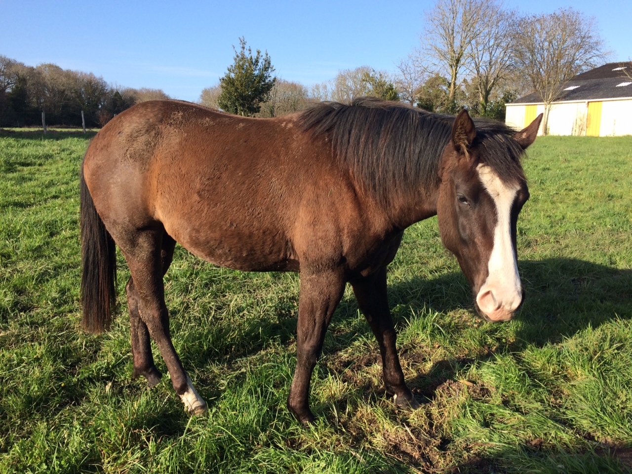 | Dire merci | Disons que pour celle qui a 21 ans, je sais exactement ce que je dois faire et je ne fais plus attention aux remarques, je la connais par coeur et je sais ce qui est bien pour elle. Ca fait 5 ans qu'elle a un greenguard d'avril à juillet / aout, ça ne pose pas de souci, elle y est habituée et c'est vraiment efficace. Pour ma jeune, je pensais qu'elle échapperait à cet embonpoint et je ne la trouve pas grosse, juste moche avec ses poils de mue qui donnent l'impression bizarre qu'elle est plus grosse... je ne sais pas comment l'expliquer mais en gros, elle a les poils en brosse qui poussent à la verticale, du coup, ça donne une drôle d'impression... Le greenguard à son âge, est-ce une bonne ou une mauvaise chose? Je lui en ai acheté un l'année dernière de toute façon, car en fin d'été, elle avait en effet pas mal grossi, mais j'avais finalement opté pour la mettre sur un petit paddock au foin une quinzaine de jours, ça avait suffit à régler le souci... Sinon, nous sommes sur des pâtures extrêmement riches ici, même la pure sang d'une des pensionnaires est grasse au printemps, mais comme les autres pensionnaires ont peur que leurs chevaux manquent, elles ne veulent pas couper le pré qui fait 7 hectares... je m'attends au pire dans les semaines à venir ... |