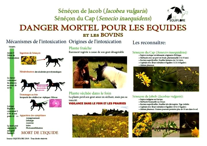 | Dire merci | Cyberds Très intéressant, merci! Dans ta liste de plante mortelle, je suis choquée de voir la vesce dedans!! Sais-tu la dose qu'il faut pour devenir très toxique voir mortelle? En ce qui concerne toute la famille de la Cigue, je ne comprends pas car cette plante ressemble à la carotte sauvage et pleins d'autres! Comment la différencier? Il y en a partout près de chez moi de ce genre de plante.. Mais impossible de savoir si c'est de la cigue, de la carotte sauvage.. Personne à un truc imparable pour les différenciers? Pour l'auteur du post, je crois savoir que le sénéçon de Jacob n'est pas ingéré par les chevaux mais en revanche reste très dangereux et toxique dans le foin où, là les chevaux le mangent. ![]() |