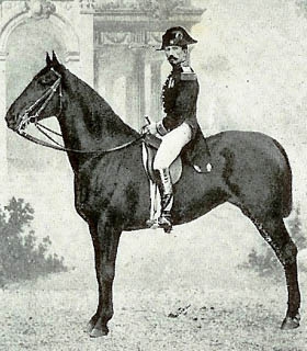 Déconnecté | La bonne position à cheval commence avec l'appui correct du pied dans l'étrier, et les jambes placées de telle façon que les etrivières soient toujours verticales, sauf pour certaines actions de jambes. On obtient ce résultat avec le travail au trot arabe, puis en suspension. Lorsque le cavalier sait passer instantanément de la position assise à la position en suspension en gardant l'équilibre, c'est à dire les étrivières verticales, il sait garder ses jambes à leur place. |