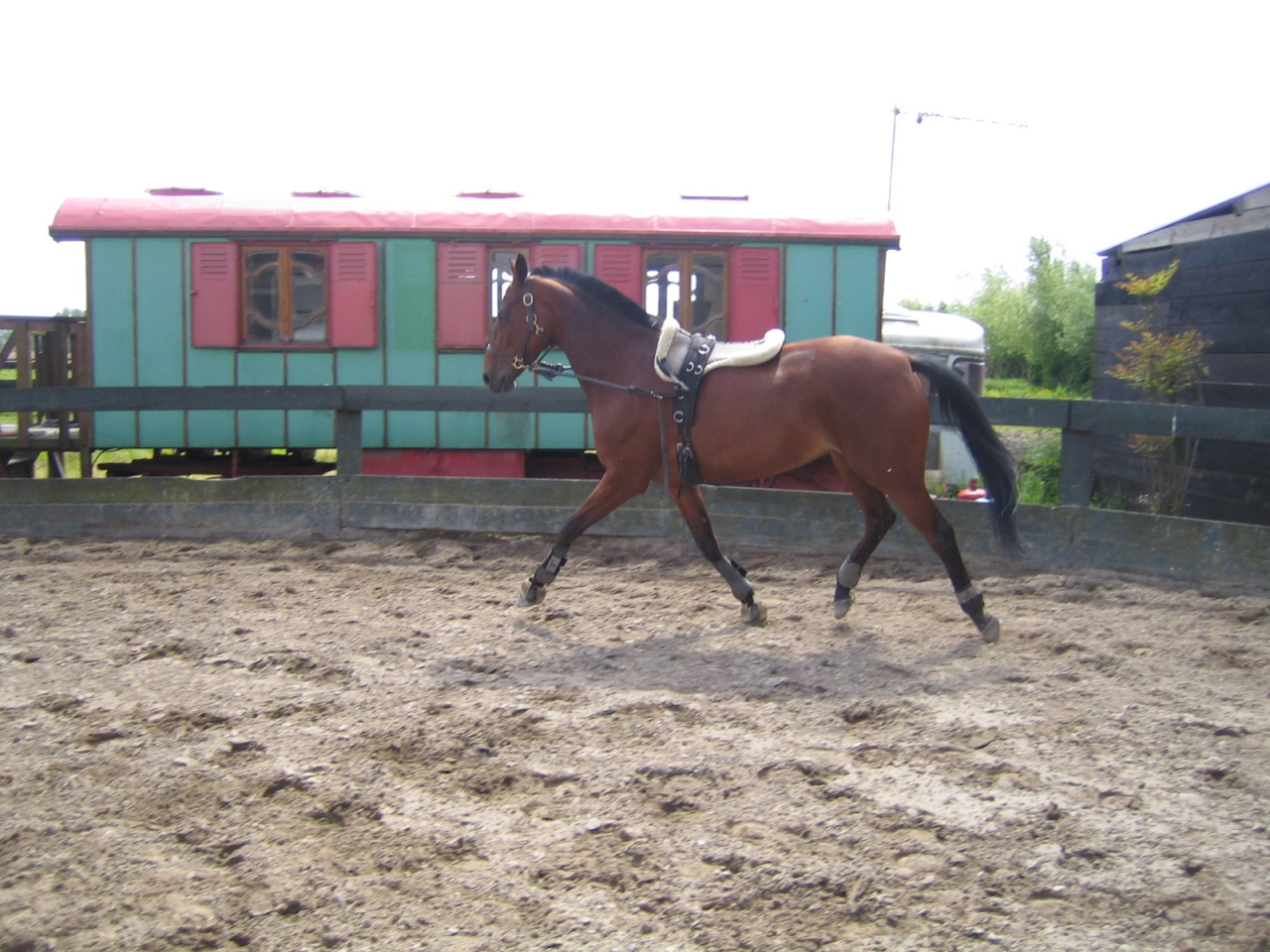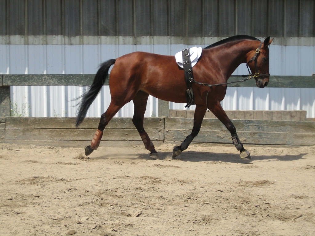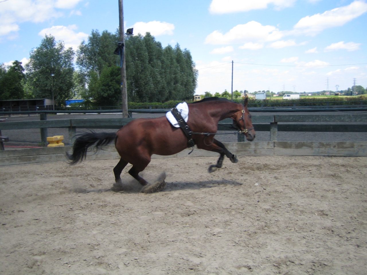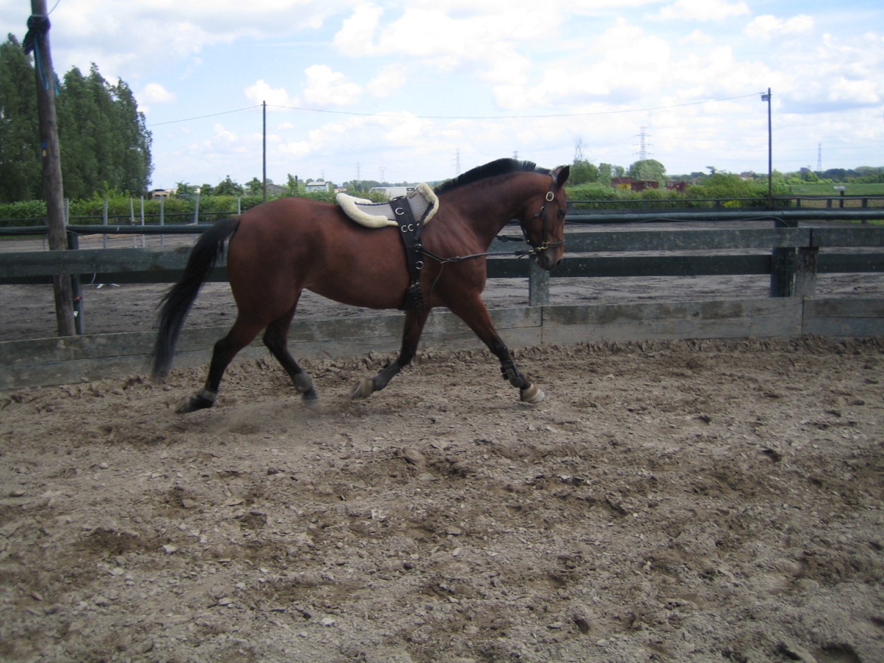 ) et suite à ça, la longe c'était une cata. Il a vu l'ostéo, et depuis, la longe ça va mieux, mais j'entends son encolure craquer quand il tourne la tête pour chasser les mouches maintenant.