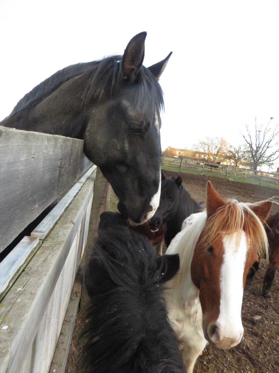 | Dire merci | Mon cheval est assez indifférent aux poney, mais a une fois beaucoup eu peur d'un cheval miniature. Comme il était pie j'ai eu un doute sur ce qui lui faisait peur, la taille ou la couleur.. |