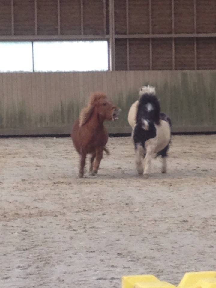 | Dire merci | C'est bien souvent que les grands ont peur des shet ! Etant éleveuse de mini-shets, j'ai été quelques années dans des pensions avant qu'on ait notre chez nous. Et limite on se faisait mal voir avec nos minis.. parce que quand on arrivait sur une carrière où des proprios travaillaient leurs chevaux, ça partait en vrille, les grands chevaux ayant trop peur de ces petites choses...du coup on y allait seulement quand il n'y avait personne.. ![]() Pareil sur les salons, on débarque dans une carrière d'échauffement c'est la panique ! J'ai même déjà du rentrer les minis dans le box hors des regards pour éviter qu'un gars lâche son cheval qu'il était à deux doigts de ne plus contrôler (alors que les minis étaient juste attachés devant, même pas en mouvement ) A contrario, les minis (et surtout les entiers!!), eux, ils n'ont absolument aucune idée qu'ils sont minuscules... que ce soit pour draguer une jument qui fait deux fois leur taille ou vouloir dégommer un autre étalon |