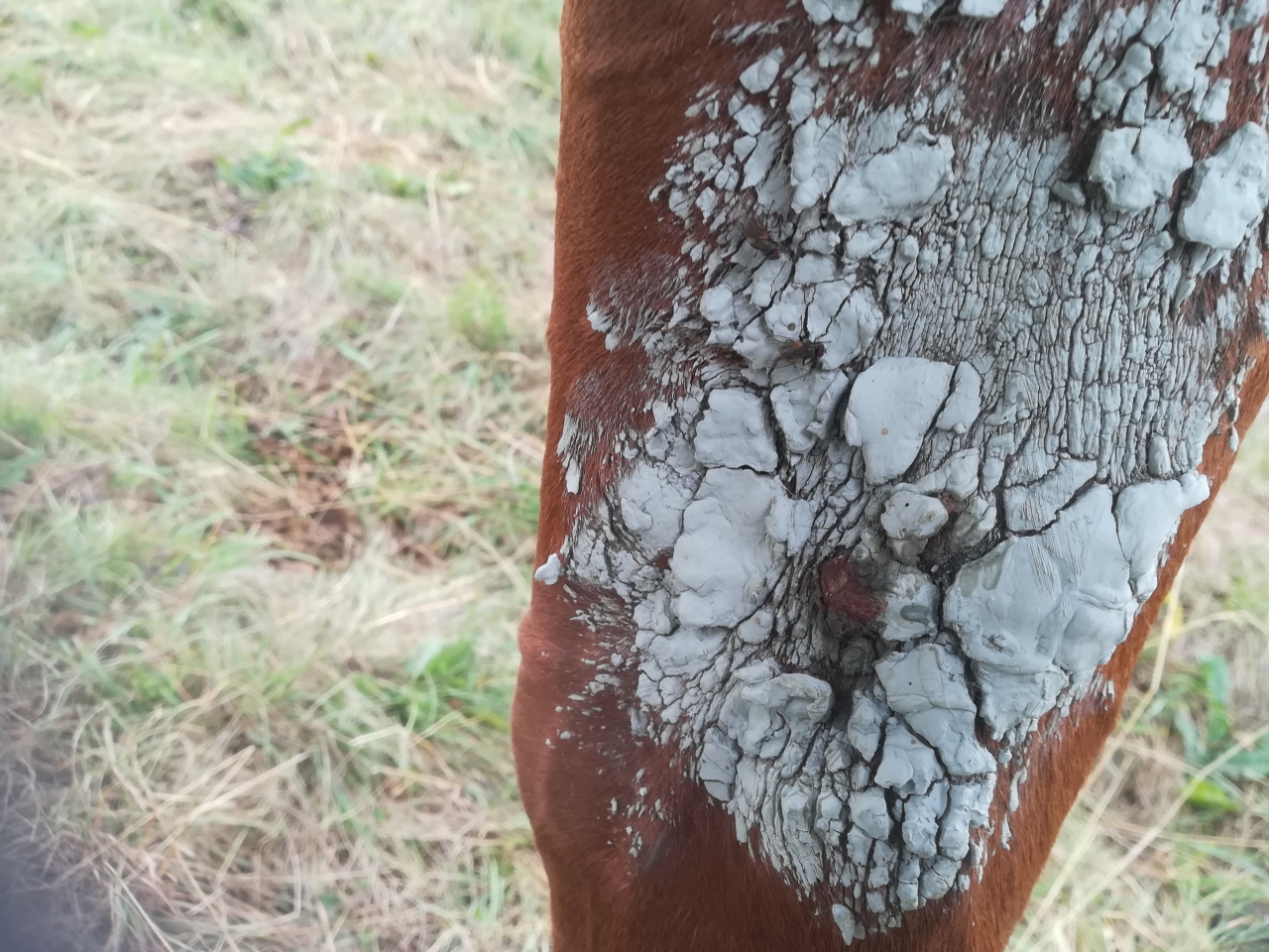 | Dire merci | Aujourd'hui c'était antibio ben je suis contente d'avoir une super copine qui est venue piquer mon poney car j'ai horreur de faire ça. La jambe est toujours gonflée mais ça s'améliore. Alors truc chelou j'ai découvert une autre plaie sur la face interne du canon mais drôlement fraîche alors du coup je suis dubitative et je pense qu'il doit y avoir un truc saillant dans le pré car là c'est pas normal quand même... j'ai clôturé le râtelier qu'ils m'ont explosé il y a quelques jours. Je continue à doucher, miel, drainage et AI encore demain |