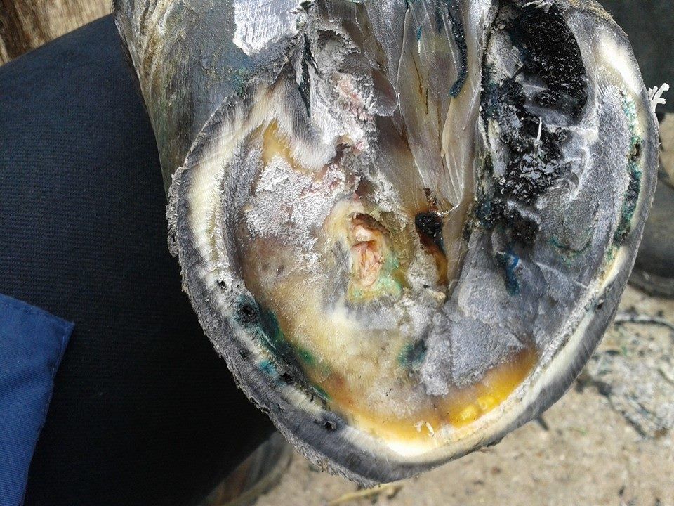Je fais ce message parce que je suis super inquiète pour ma jument et je cherche un peu de réconfort, des ondes positives et des expériences similaires... Vendredi elle s'est enfoncée un morceau de ferraillage à béton dans le pied (style gros clou) à gauche de la pointe de la fourchette. Je l'ai retiré tout de suite, c'était vraiment un gros truc et il y avait quelques millimètres tachés de sang. J'ai tout de suite mis de la bétadine dans le trou et fait un pansement avec du vetrap. J'ai appelé la véto qui est venue, a fait une injection d'anti inflammatoire, a mis de l'antibiotique localement et j'ai fait des pansements avec de l'antibiotique pendant 3 jours 2 fois par jour. Ma jument a eu de la fièvre, elle est restée couchée le vendredi et le samedi. Depuis hier la fièvre est tombée et elle se déplace un peu mais elle boite beaucoup, elle ne pose plus son pied par terre. Ce soir la véto revient pour faire des radios et vérifier si le clou a touché l'os ou pas et commencer des infiltrations. Je croise tous mes doigts pour que l'os soit intact... |