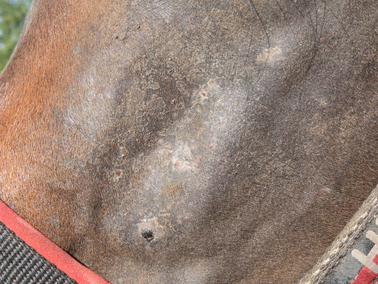 | Dire merci | oui essayer traitement après traitement. Lui réserver ses brosses à lui. C'est dingue qu'il arrive à se faire ca avec pré snas point de gratage. Le metre en pension dans région non atteinte.... et le faire revenir une fois lésion guérite et reprendre couverture intégrale et pré snas poitn de gratage, boxe la journée (j'avoue que c'est radical, j'ai uen amie qui a confié son cheval poru cette raison à quelqu'un habitant en montabne, pas de moustique allergisant là bas); |