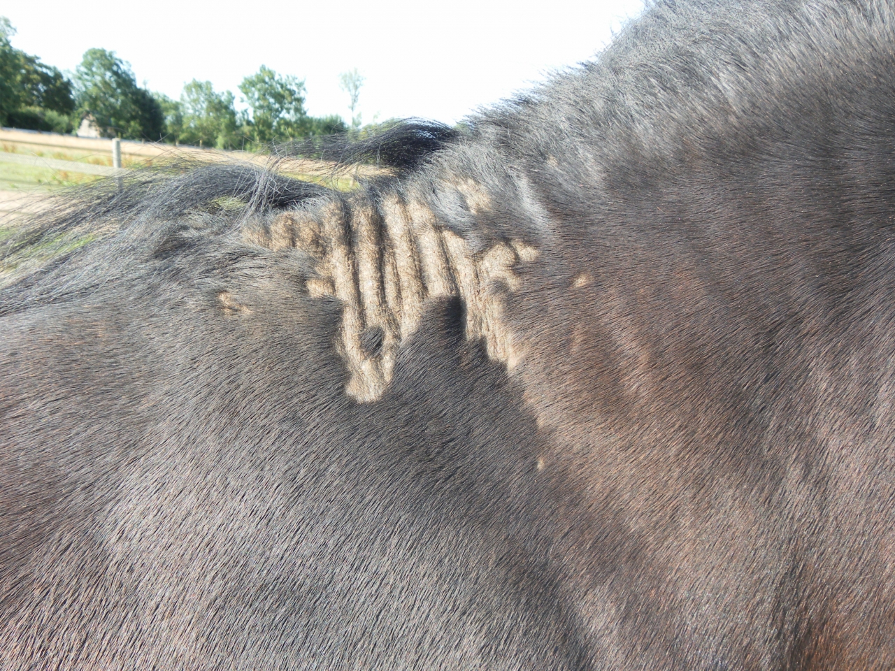 | Dire merci | Voilà l'état de mon cheval et ce malgré le port d'un masque h24 et d'une chemise anti-dermite (la dernière explosée en moins de 48h, il continue à se gratter tout autant avec). Lésions à peu près partout comme le montrent les photos, même aux endroits inatteignables par les insectes (base du toupet etc). Aucun produit anti-dermite ne fonctionne. Cortisone inefficace. Test Alergovet négatif. Les pds ne montrent rien d'anormal. Actuellement sous Butox, Bye Bye Itch de chez Hilton Herbs en complément alim et lotion, Emouchine... autant lui mettre de l'eau. Toute idée est bonne à prendre! ![]() ![]() ![]() ![]() ![]() ![]() ![]() ![]() ![]() ![]() |