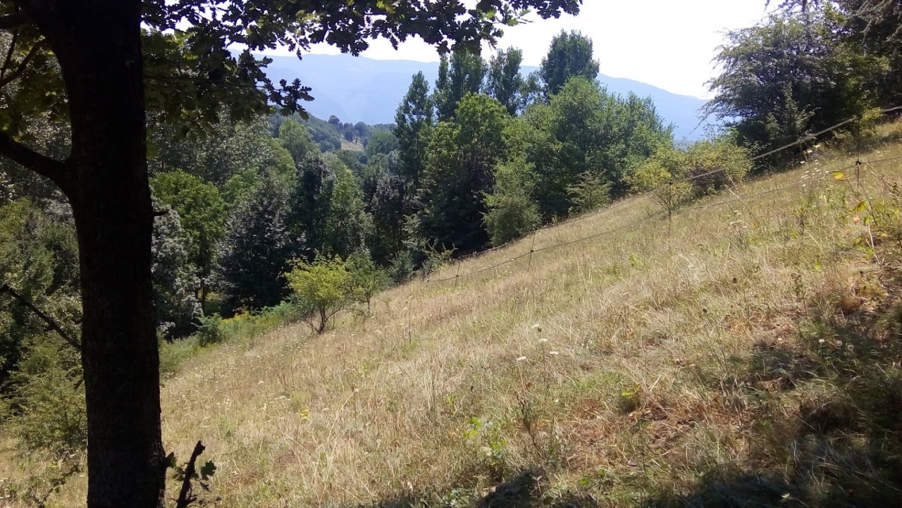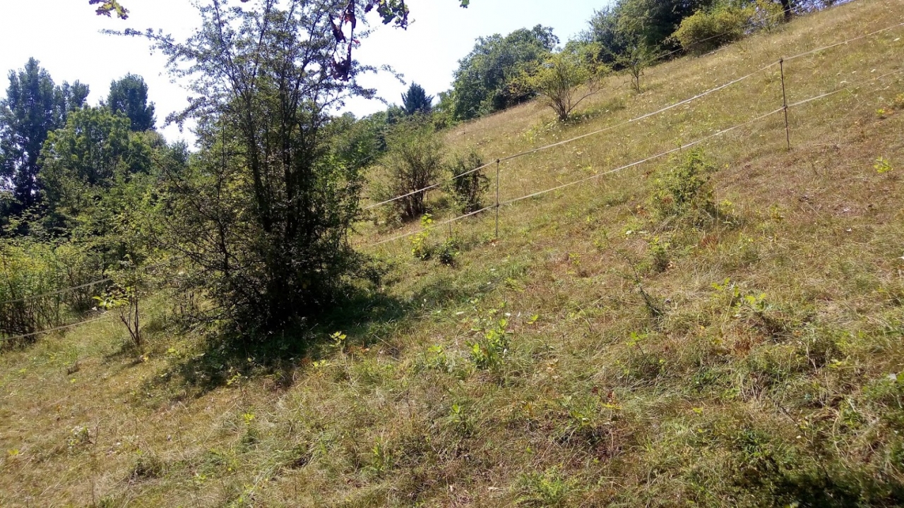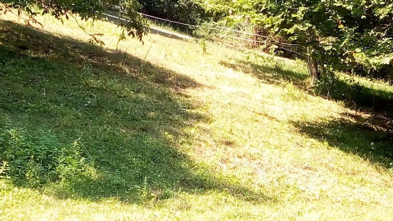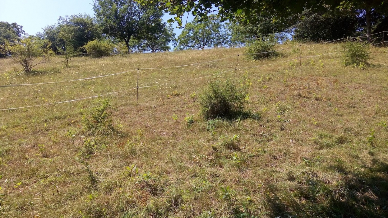 | Dire merci | Et voici nos prés (ceux où il faut envisager le broyage) Vu depuis le paddock ![]() On commence à descendre (j'ai pareil dans mon dos, je ne suis pas encore à mi pente, je regarde sur le côté parce que face à la pente, on ne se rend pas compte sur les photos de l'angle de la pente) ![]() (de l'autre côté) ![]() Il y a 4 parcelles, je suis dans l'une des 2 plus pentues, mais elles sont à peu près semblables, c'est le même terrain, divisé en 4) |