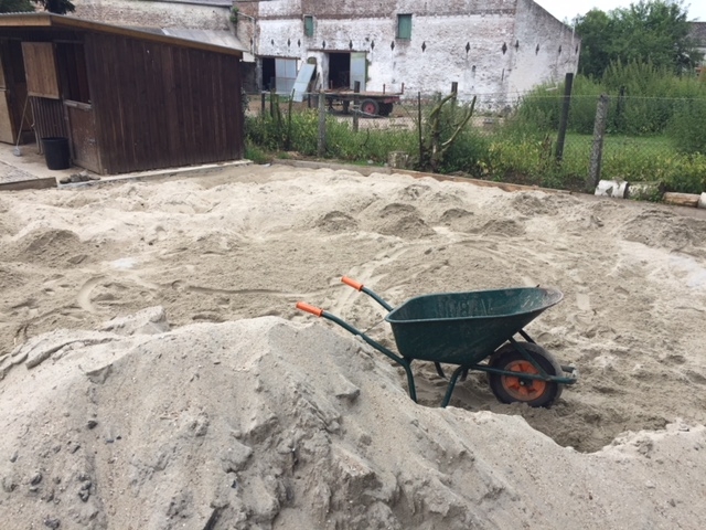 DéconnectéDire merci | Amoureusement : alors le coût … je t'avoue que j'essaie de ne pas trop y penser, c'est beaucoup trop ![]() Pour faire précis, environ 2000euros pour la dalle béton et 2000 les deux boxes. Le paddock en sable fait grosso modo 11m par 11, j'ai eu des devis allant de 5000euros à plus de 20000 … alors on a décaissé nous-mêmes et évacué la terre chez un agri du coin. On a posé 30t de gros cailloux de grès concassé ( environ 13euros la tonne + 100euros de livraison), deux couches de géotextile ( pour environ 250euros), le sable du rhin ( environ 700euros avec la livraison), devant les boxes ce sont des dalles Horsekanias ( il y a 21m carrés à 20euros le m carré soit 420euros) … ma calculette m'indique presque 6000euros J'attends une commande de 50m carrés supplémentaires de dalles horsekanias pour le côté et une livraison de 15tonnes de cailloux pour achever l'allée de l'autre côté, qui donne sur la cour que nous leur ouvrirons également… ( soit encore environ 1250euros ..) Dans le futur, j'aimerais aussi mettre des matelas caoutchouc dans les boxes pour éviter la litière vu qu'ils seront en stabu. Et non, je ne roule pas sur l'or malheureusement … ce sont des choix et des sacrifices |