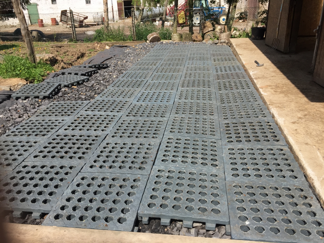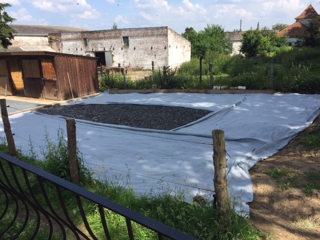 DéconnectéDire merci | Puisque ça n'est pas passé … Voilà le paddock presque achevé : ![]() et les étapes de la réalisation : ![]() ( avant de déposer les cailloux, on a creusé sur 40cm et posé une première couche de géotextile) |