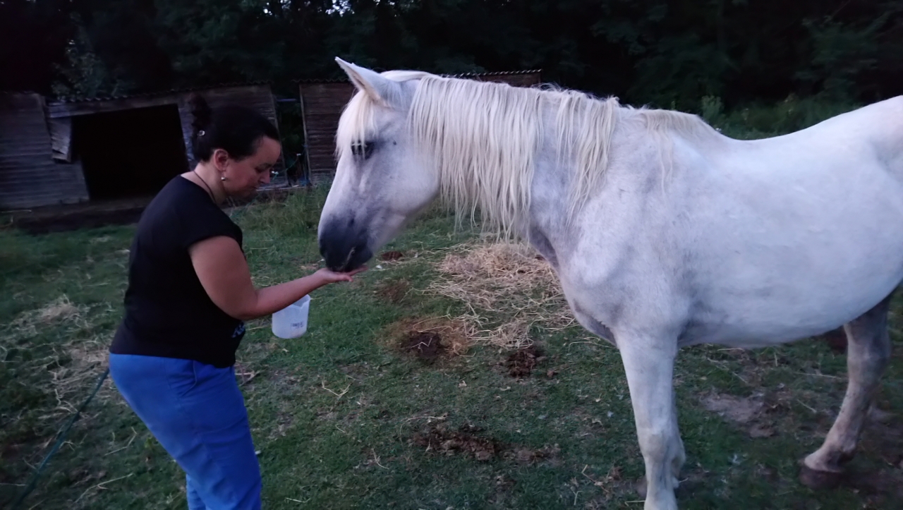 | Dire merci | Elle a eu une prise de sang qui ne donnait rien. Tout était normal. Elle revient mardi. Elle m'a dit qu'elle ne pouvait rien faire de plus (vu son âge et son état affaibli). En même temps le mot d'ordre est : pas d'acharnement. Si elle ne s'en sort pas avec tout ce qu'on fait... On la laissera partir. C'est une ponette que j'ai récupéré pour l'emmener au bout. Peut être que c'est maintenant... Ça me fait de la peine d'autant plus que ça réactive la douleur de la mort d'Augustine, ma jument perdue l'année dernière. Je m'en vais de ce pas voir ce qu'elle fait. |