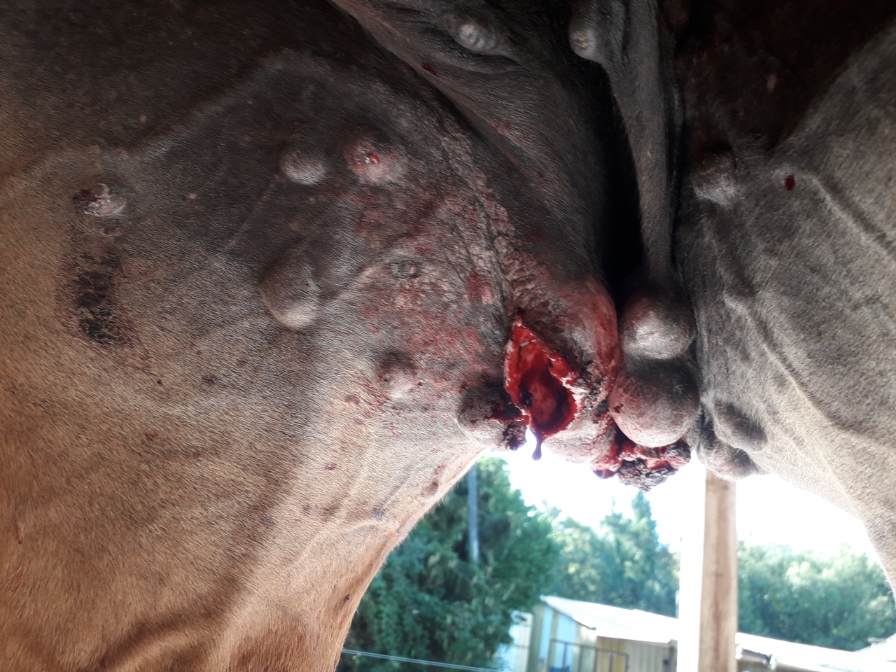 DéconnectéDire merci | Ma jument à les mêmes certains en sous cutanés ont éclatés au droit des mamelles. Evites la bétadine tu as bien fait de doucher petit jet et laisser couler l'eau de côté. Sécher avec compresse et tu peux passer de l'agent colloidale en 15 PPM bien à l'intérieur de la plaie et au pourtour en prenant large. Une bonne crème comme cothivet ou bien moi je mets du miel de thym bio. J'ai remarqué que les changements de temps et la mue soit j'avais une poussée soit des sarcoïdes qui s'ouvrent. Bon courage ! |