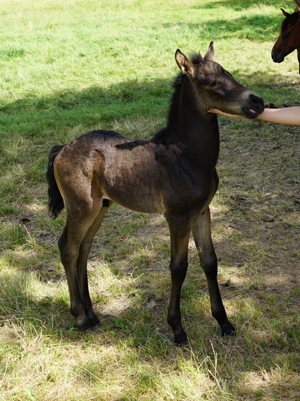 | Dire merci | Isabelle sooty, ou pourquoi pas smoky black, à voir comment la robe évolue. L'isabelle sooty peut ressembler à du bai brun, le smoky black est plus discret et peut passer pour un noir. |