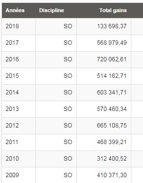 | Dire merci | Bosty n'étant a aucun de ces concours j'ai voulu voir où il était engagé (en fait nul part il va retourner à Malines le 26), j'ai regardé ses résultats et ce sont les pires et de loin depuis 9 ans ![]() ![]() |