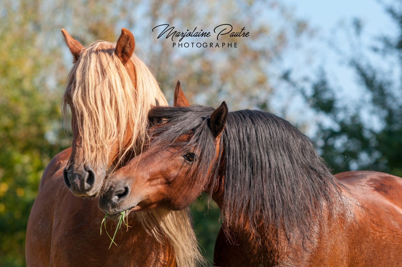 | Dire merci | Très jolis chevaux ! Je me demande si mon poney origine inconnu n'aurait pas un peu de landais dans le sang car beaucoup de similitude, tant physiquement que niveau caractère... Et niveau géographique, ça colle aussi... En tout cas ça fait vraiment plaisir de voir des étalons qui ont vie sociale épanouie. Trop d'entiers sont isolés, sans relation social. Normal qu'ils deviennent fous... Je connais un élevage avec trois étalons : deux d'entre eux vivent ensemble à l'année. Le troisième reste avec une des juments qu'il a sailli . Le poulain nait avec sa mère et son père. Quand il atteint l'âge d'1 an, la mère est retirée. Le poulain reste avec son père jusqu'à sa vente. Puis rebelotte lors des saillie suivantes. Ces trois étalons PSA sont bien dans leur tête, calme et heureux. |