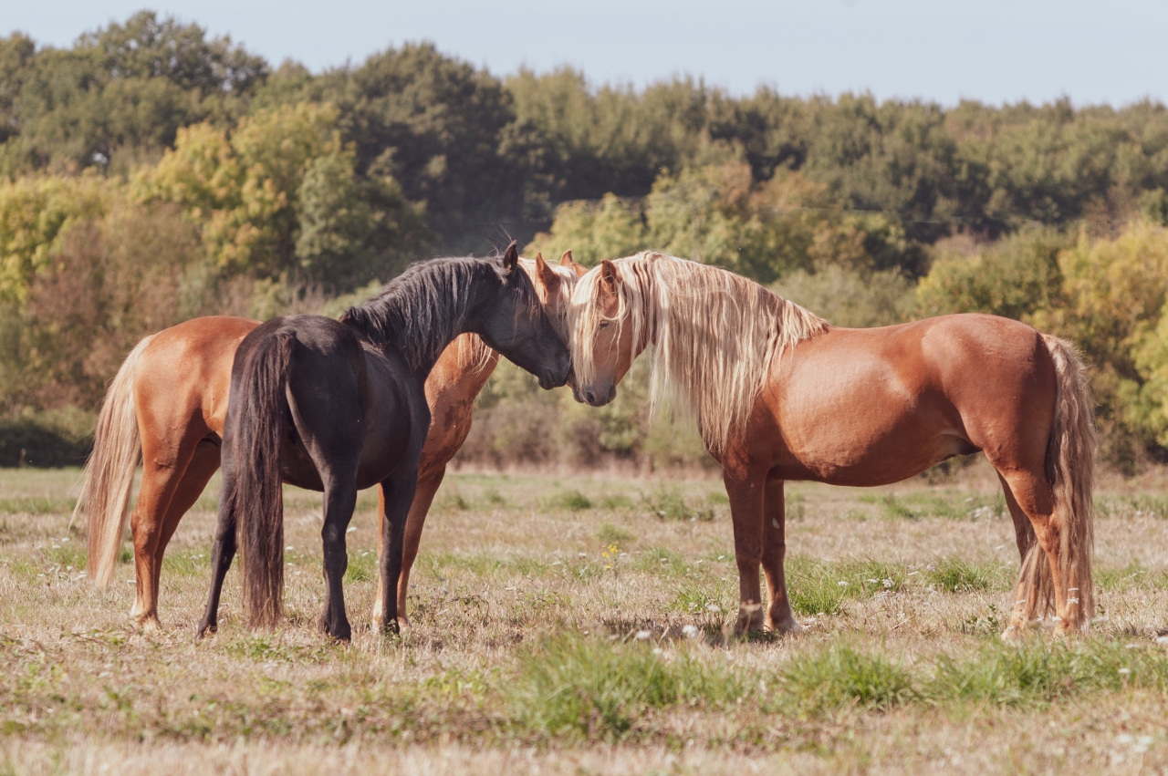 | Dire merci | Je suis éleveuse de poneys landais, une race de poneys de sports qui fait partie des 7 races de chevaux/poneys de territoire français qui est malheureusement menacée d'extinction (moins de 30 naissances par an.) Nos méthodes d’élevage se veulent le plus naturelles possibles : - Nos étalons saillissent leurs juments au pré en liberté - Les juments mettent bat au sein de leur troupeau - Les sevrages se font lorsque les poulains sont prêts (aux alentours de 8/10 mois) - Nos 4 étalons passent l’hiver ensemble dans le même pré En effet nos étalons ont quitté leur troupeau de juments respectif pour passer l’hiver « entre hommes ». La rencontre est toujours impressionnante : ça couine (énormément), ça se cabre, ça palette, ça met des coups de cul... Mais si on regarde de plus près on s’aperçoit que chaque coup est parfaitement maîtrisé et qu’il ne vise jamais personne. Ils font les gros bras, se jaugent mais ne se touchent pas. Au bout de quelques heures, ce sont tout un tas d’interactions qui vont avoir lieu entres eux, la principale ? Se sentir en couinant! Mais ils vont aussi passer énormément de temps à se gratter, se pincer gentiment et se groomer. La hiérarchie du troupeau s’est faite au départ, en quelques minutes seulement chacun connaissait sa place, ils vont maintenant pouvoir jouer, se chamailler, faire la bagarre mais toujours dans le respect et la bienveillance. Parce qu’avant d’être des étalons, se sont surtout 4 poneys qui ont besoin de contacts sociaux, de jeux, d’espace et d’herbes ! La sélection sur leur tempérament y est pour beaucoup, le cadre de vie fait le reste... ![]() ![]() ![]() ![]() |
