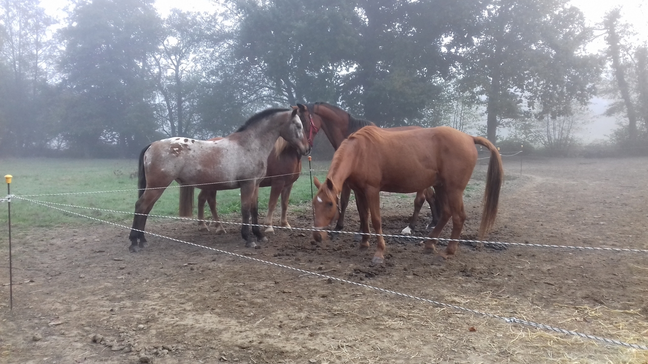 | Dire merci | ![]() Les deux fugueurs à droite, mes deux chevaux à gauche. Ça leur a fait de l'animation pour la journée ! Quand leur proprio est venu les récupérer, il a proposé de me les donner ! Deux trotteurs de course de 13 et 14 ans. Il ne les garde que pour leur éviter la boucherie... Ça part d'une bonne intention mais avec des clôtures electrifiées ça serait mieux 😉 |