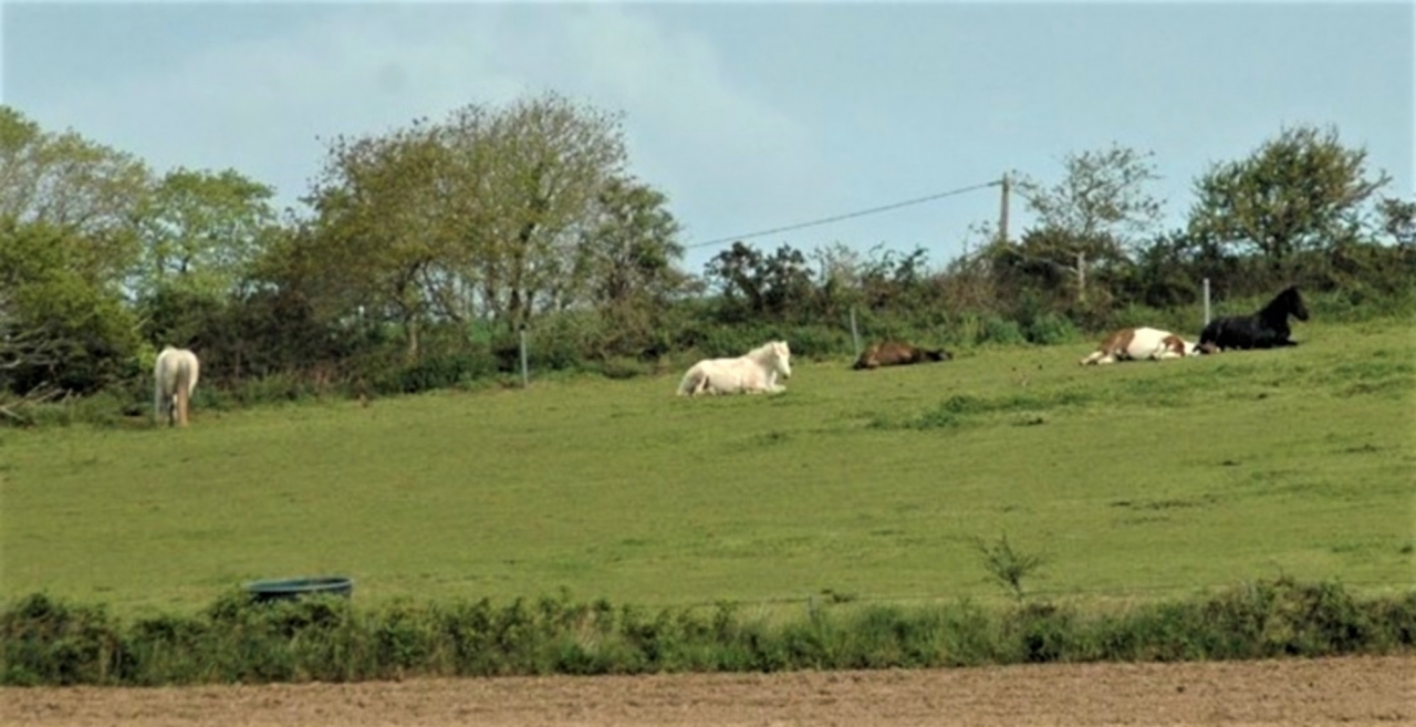 | Dire merci | Ils sont 5 à la maison, une seule fois je les ai vu tous couché sur la pelouse en rentrant chez nous mais une fois entendu ma voiture Tonerre le "dominant" s'est vite relevé. Généralement ils sont deux à veiller, sur cette photo de 2014 j'avais été surprise de voir Tonerre couché de tout son long (le pie bai), jamais revu depuis, ici la "sous chef" avait pris sa place. J'espère donc que ça lui arrive de temps en temps de pouvoir se reposer complètement ![]() ![]() |