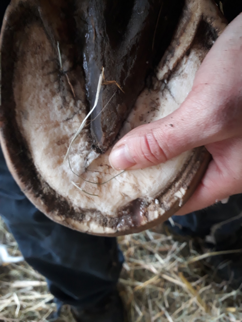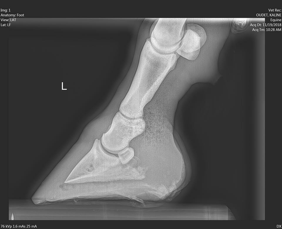 | Dire merci | Bon ben j'ai profité des ondes magiques du forum, ça a percé aujourd'hui, de façon inatendu dans la ligne blanche On avait affiné la sole là où le sabot était le plus douloureux (à la seule pression des doigts). Mon podologue était d'avis de percer à cet endroit. La véto préférait attendre que l'animalintex fasse son travail, plutôt que de fragiliser le pied, vu l'épaisseur de sole à traverser. C'est du cas par cas, je pense pas que d'ouvrir systématiquement la boite cornée se justifie quand même... Radio ![]() Cavité aujourd'hui ![]() |