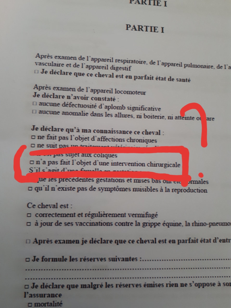 Assurance cheval déjà opéré