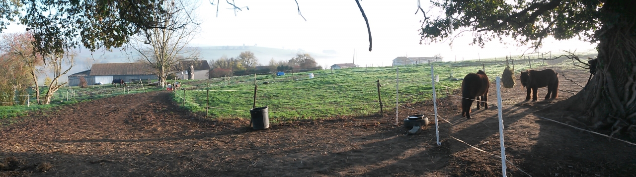 | Dire merci | J'ai fait une carrière (sur sol en herbe) de 50 m x 20 m. C'est utilisable pour le moment car pas trop mouillé. Quand il pleut, c'est glissant, donc on travail dans les longueurs à petit allure et les obstacles en ligne droite. Après, il n'y a jamais plus de 2 chevaux qui travaillent en même temps et pas plus de 2 fois par semaine voir moins, ça évite de trop abîmer le terrain. ![]() |