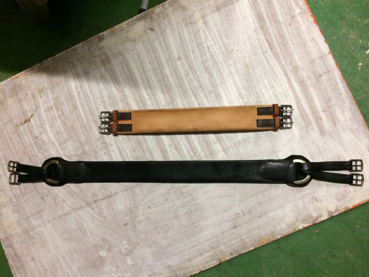 | Dire merci | Tu peux avoir une sangle sur mesures faite par un artisan, pour un prix inférieur à certaines de celles qui sont mentionnées ci-dessus. Ainsi: - tu auras exactement le modèle et la longueur désirée: par exemple, une sangle courte de 95 cm avec passants, qui t'éviteras d'avoir les contresanglons dans les pieds; - si tu veux de l'"anatomique", tu pourras en choisir la forme avec précision (largeur précise et emplacement des élargissements et des déports) adaptées à ton cheval, au lieu de prendre de l'"anatomique" standard qui risque de ne pas être adapté à ton cheval légèrement hors normes. - tu pourras choisir toutes les finitions: type de boucles, couleur, ... ![]() |