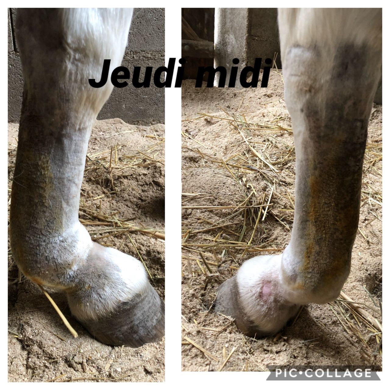 | Dire merci | Bonjour je remonte mon poste Pour vous montrer l’évolution Ont a eu des haut et des bas depuis Le gros avait perdu pas mal de poids durant l’été Il m’a fait une sorte de cerise au niveau d’une fourchette aussi Il a eu le droit à une bonne séance ostéopathie aussi Et vu qu’il posait le pied toujours en pince avec mon maréchal ont a essayer la ferrure a l’envers il y a 10 jours Quelle photo avant après ![]() ![]() |