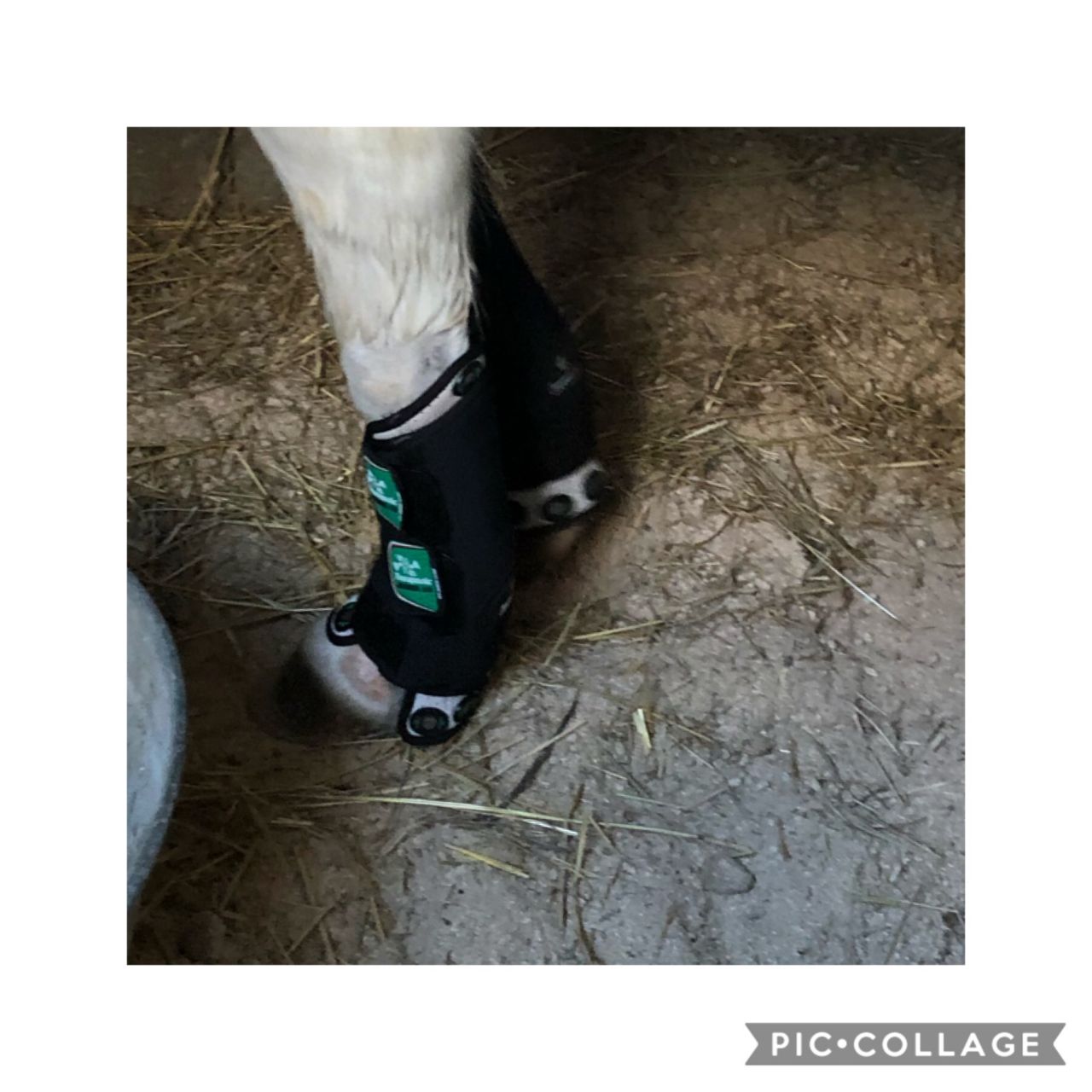 | Dire merci | Bonjour une récapitulation en photo depuis 4 jours Donc il n’a plus d’anti inflammatoire depuis lundi Je vais attaquer un drainage Il est toujours en Box sur Pellet la nuit et suivant la météo il sort le matin ou le midi au parc Le soir douche avant le retour au box hier j’ai reçu mes guêtres magnétiques mais pas évident à mettre au niveau de sont antérieurs droit et ce matin elle avais descendu et tourner je ne les ai sûrement pas assez serré ![]() Donc bon y’a pas trop d’intérêt si j’arrive pas a les garder en place correctement et c’est la première fois que j’utilise ce genre de guêtres ont verra ce soir quand je vais lui remettre ![]() ![]() ![]() ![]() J’ai trouver une bonne promo pour les ice vibe hier donc j’ai passé commande j’espère Les avoir pour lundi |