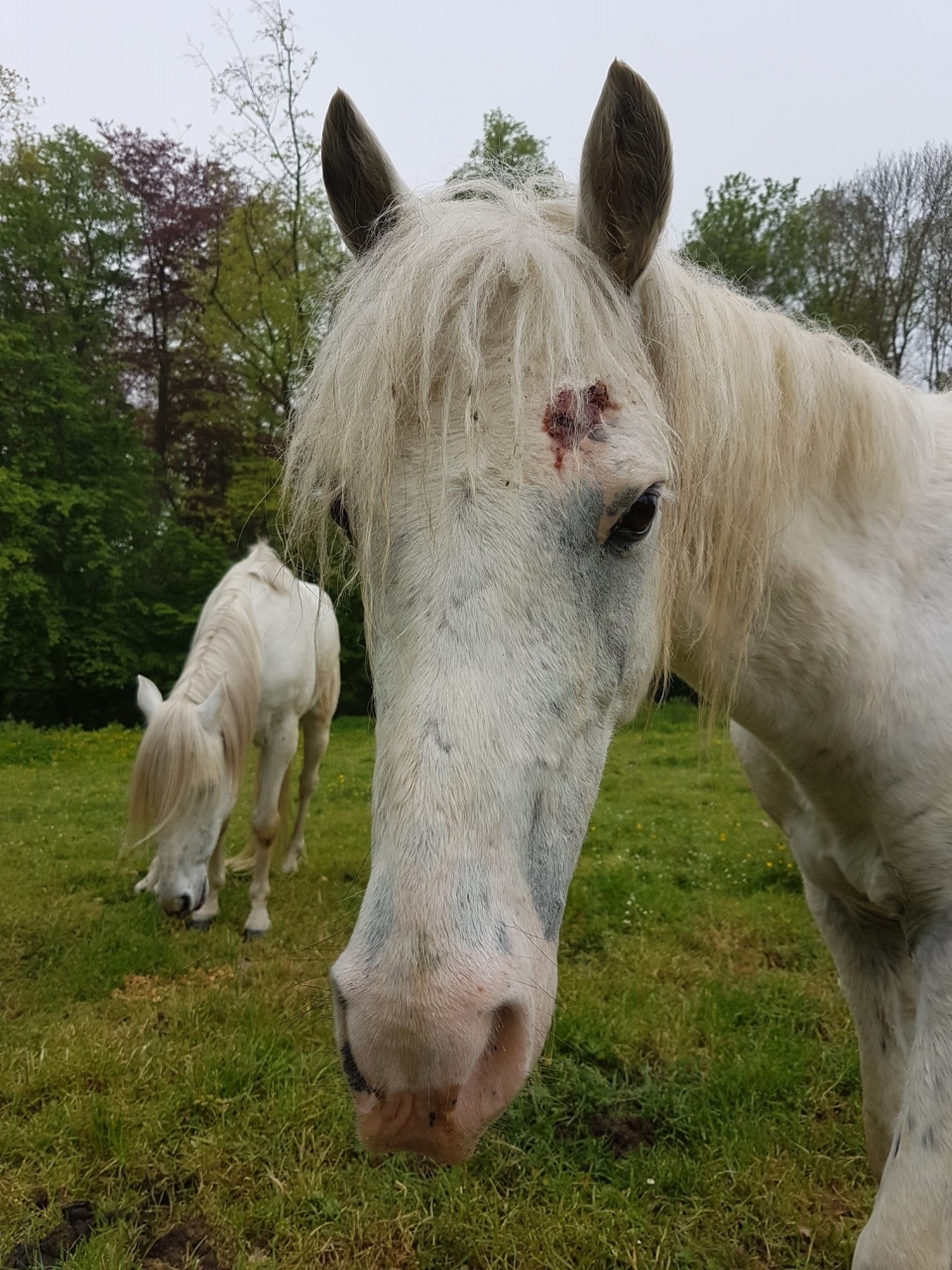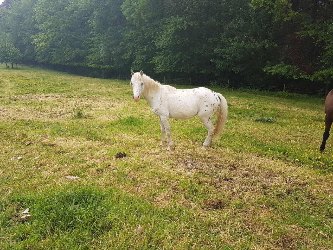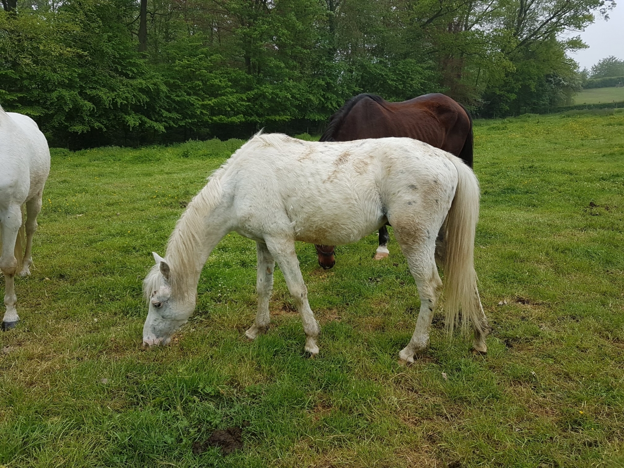 DéconnectéDire merci | Voilà, le printemps est revenu, les chevaux vont en prairie et donc j'ai de nouveau un peu de place pour les misères. C'est un poulain 'à taches' dont je ne connais pas très bien l'âge mais qui a visiblement manqué de tout et ... qui s'est fait mordre par un cheval de trait pendant le transport et puis, ben avec un peu de spray bleu ça allait sûrement s'arranger tout seul hein ... l'oeil ne semble pas touché Pour vous donner une vue d'ensemble de la pauvre bête ![]() Ce message a été modifié par un modérateur. |