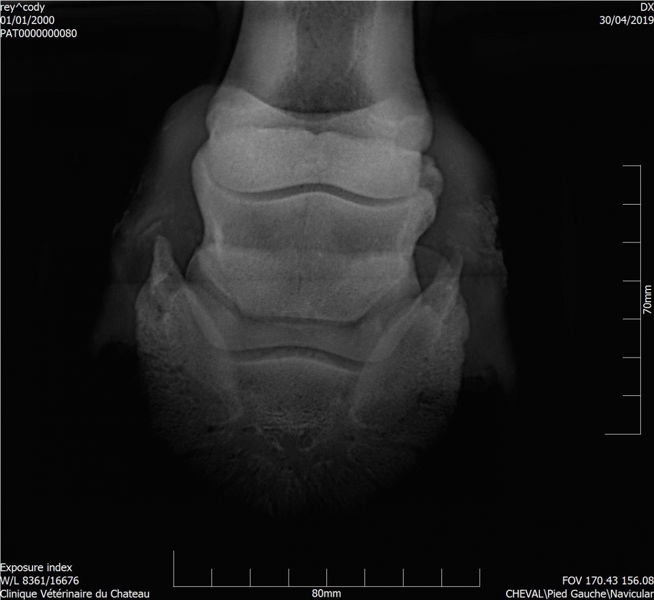 | Dire merci | Les radios ont été faites hier, il y a clairement un souci sur le naviculaire antérieur droit (le véto m'a montré le cliché sur l'écran). |