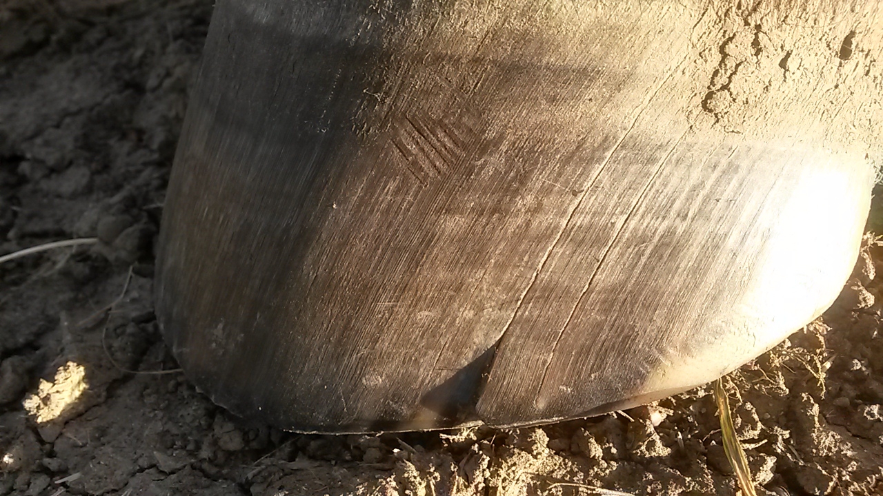 | Dire merci | les 2 lignes sont bien le signe d'un defaut sur le pied/paroie. surrement trop longue "regulierement". il faut que avec une pince tu coupes le bout cassé, comme tu te couperai un ongle cassé. ensuite tu parres le pied, et tu limes au niveau du bout coup2 pour egaliser + roll. si tu ne sais pas faire, pourquoi ne pas demander un parrage a ton MF? ton cheval semble en avoir besoin puisque sa paroie casse |