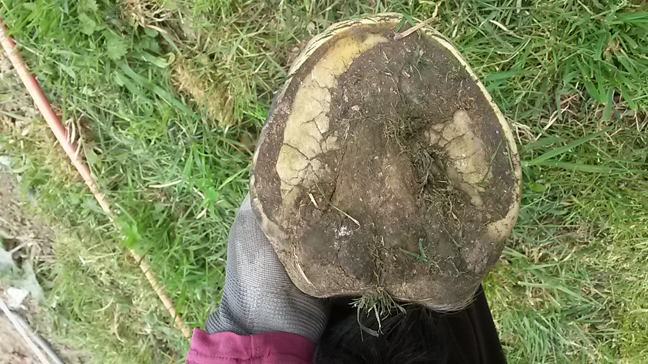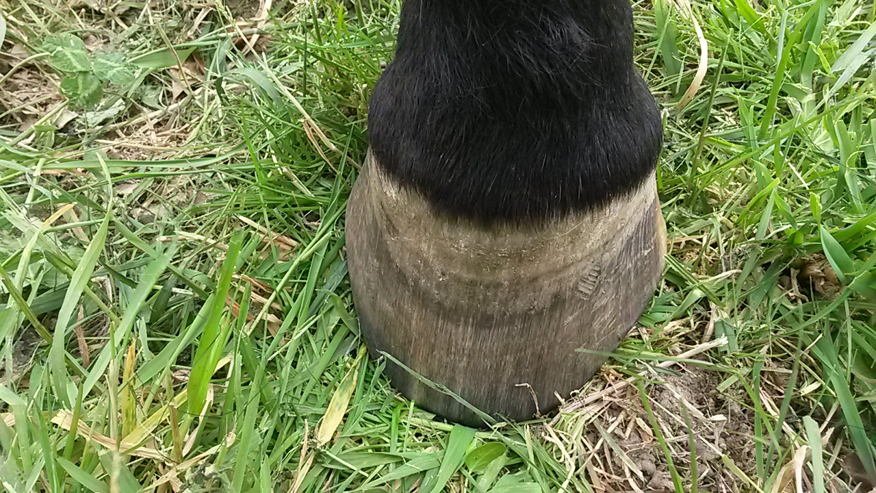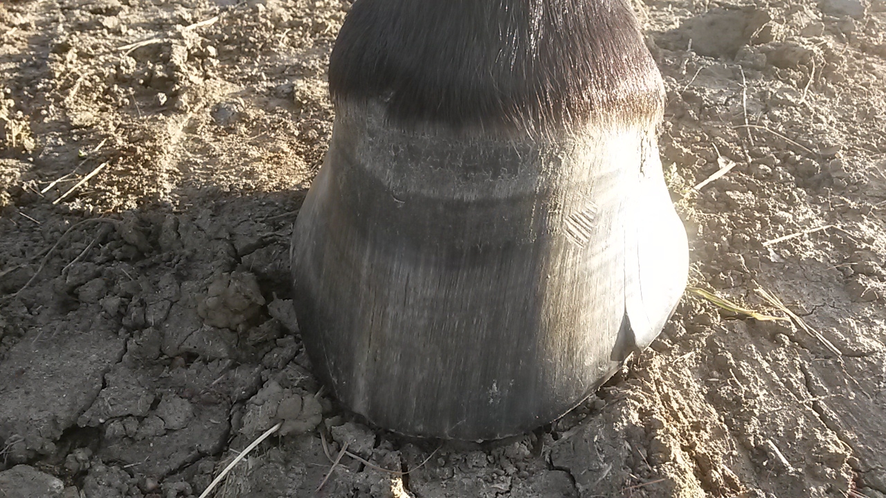 | Dire merci | Mon dernier trotteur (adopté fin juillet 17) à ce même genre d'évasement à l'antérieur droit et des talons vraiment migrés aussi bien à l'antérieur droit que gauche. Je rattrape peu à peu, les talons sont mieux maintenant mais l'évasement est difficile à rattraper. De plus il a le même genre de parole qui s'effrite mais sur les côtés. Je passe un petit coup de râpe régulièrement mais c'est bizarre, on dirait comme de la ficelle. |