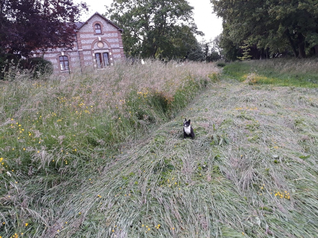 | Dire merci | Alors , voila photo du dessous (cela me permet de voir qu'il y a des brins d'herbe coincés) :![]() Et voila la calamité (pas ma petite chienne) ![]() La ou est ma petite chienne , j'ai couché l'herbe avec le broyeur eteint , juste pour écraser. Je ne suis pas sure que ce soit une bonne solution mais je ne vois pas quoi faire d'autre. C'est tres tres dense. Le broyeur marche sur de l'herbe qui n'est pas dense mais là …. |