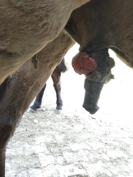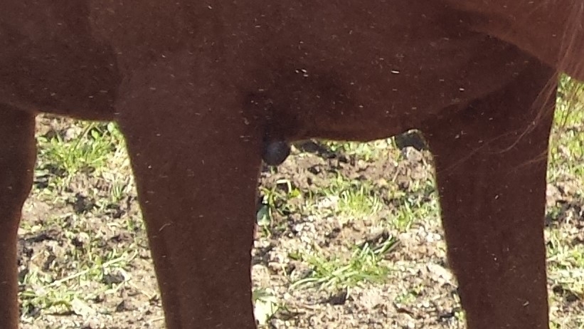 | Dire merci | J'ai une jument sur laquelle le veto vient de mettre un élastique sur son sarcoide entre les cuisses. Quand ça tombera , cela fera une plaie comme ça ? ![]() |