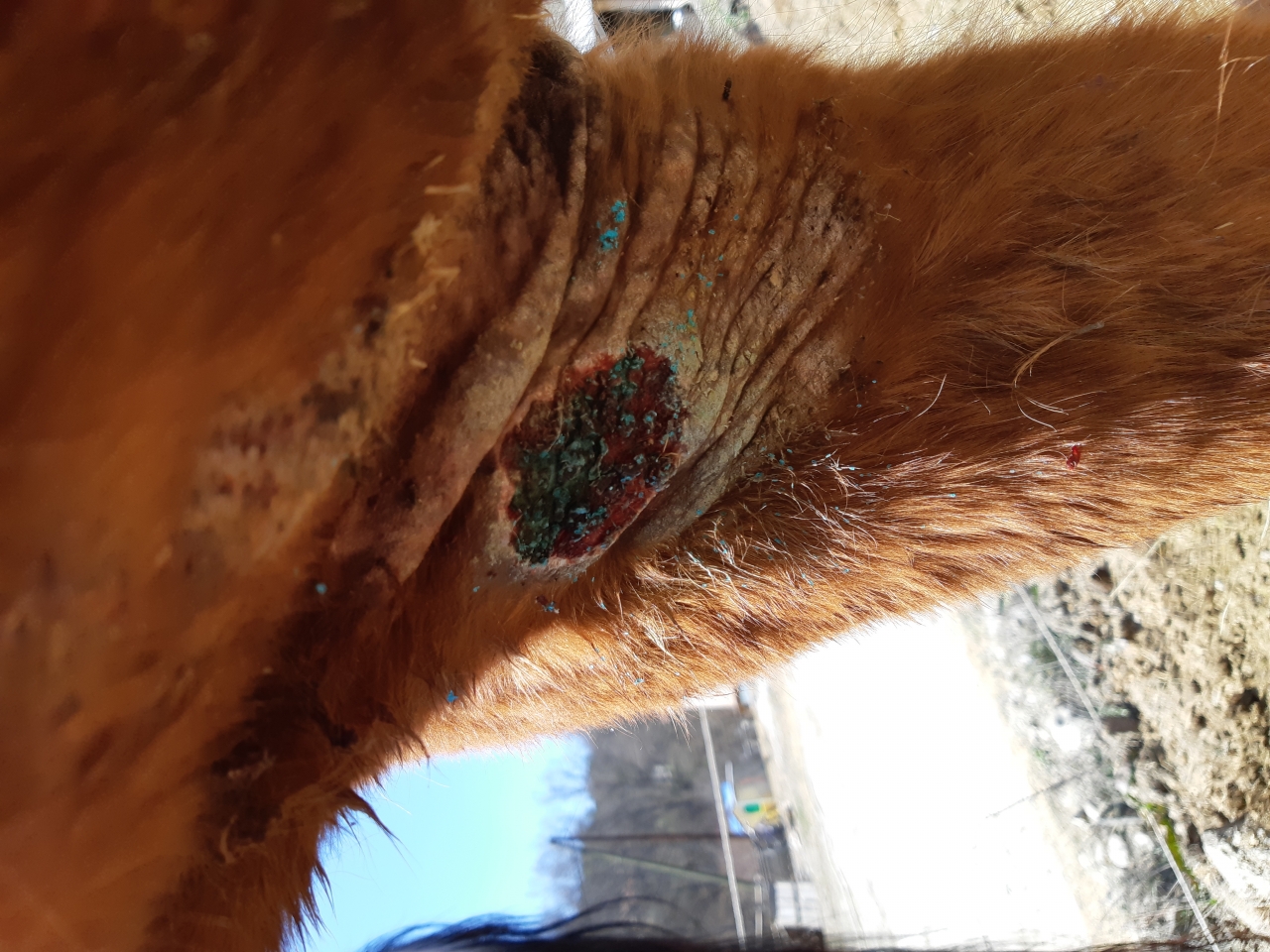 | Dire merci | Ah bah je comprend mieux pourquoi mon véto n'a pas voulu intervenir sur les sarco multiples à l'intérieur des cuisses Sur une autre jument, il avait coupé un gros sarco au bistouri sous le ventre, après 4-5 jours de betadine, j'avais eu 5 semaines de xxterra pour cramer la racine et ne pas la laisser réagir. Ça avait bien fonctionné. Du coup au debut des applications javais mis sur un tissu crouteux semblable à ta 1ere photo de plaie. |