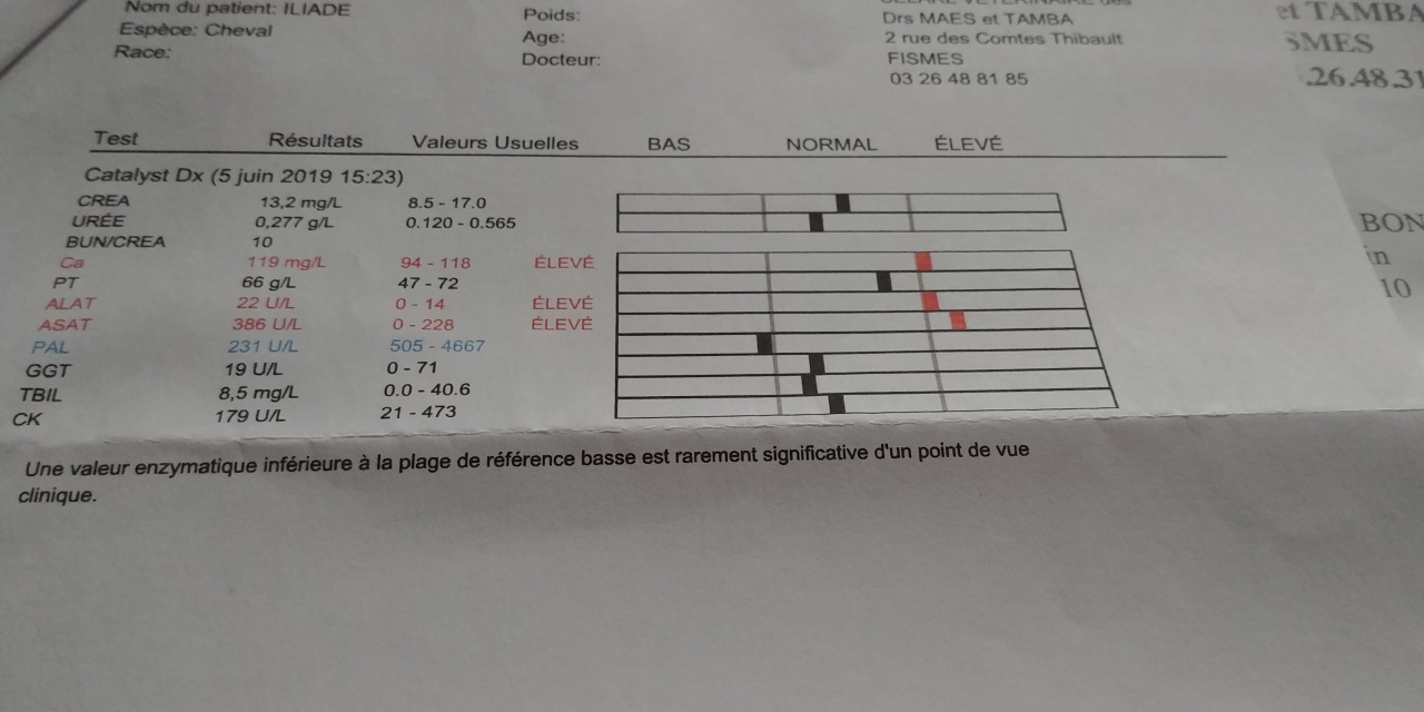 DéconnectéDire merci | Bonsoir, Je m'adresse à vous car j'ai un souci avec mon poulain de 10 mois. Voilà 15j, 3 semaines qu'il ne reprenait pas d'état, il a perdu un peu de poids (on voit ses côtes mais reste charnu sur le reste su corps). Au début je mettais ça sur le dos d'une poussée de croissance puisqu'il avait beaucoup grandi d'un coup, j'ai augmenté sa ration de grain( il est au pré donc il a l'herbe en plus) et toujours pas génial, pas d'amélioration fulgurante. Cette semaine j'ai appelé la véto pour une prise de sang et les résultats sont pas tops . Elle pense à l'ingestion d'une mauvaise herbe mais au cas où envoie la séro en analyse plus poussée (lepto, piro..). J'ai perdu mon 1er cheval il y a 2 ans sans qu'on ait réellement trouvé la cause mais il y avait atteinte hépatique (à l'époque les sérologies lepto et lyme étaient +), la myopathie et rhinopneumo avaient été écartées. En attendant les résultats je stresse. Qu'en pensez-vous ? Avez vous des pistes ? Il n'y a aucun autre symptôme : pas de fièvre, il a du jus, de l'appétit, se déplace... En attendant j'ai du sedochol prescrit par la véto à lui donner tous les jours pendant 6j pour soutenir le foie. On est à 3j de traitement et je trouve qu'on voit moins ses côtes mais c'est encore apparent. Merci de partager vos expériences. ![]() ![]() Message édité le 08/06/19 à 21:33 |