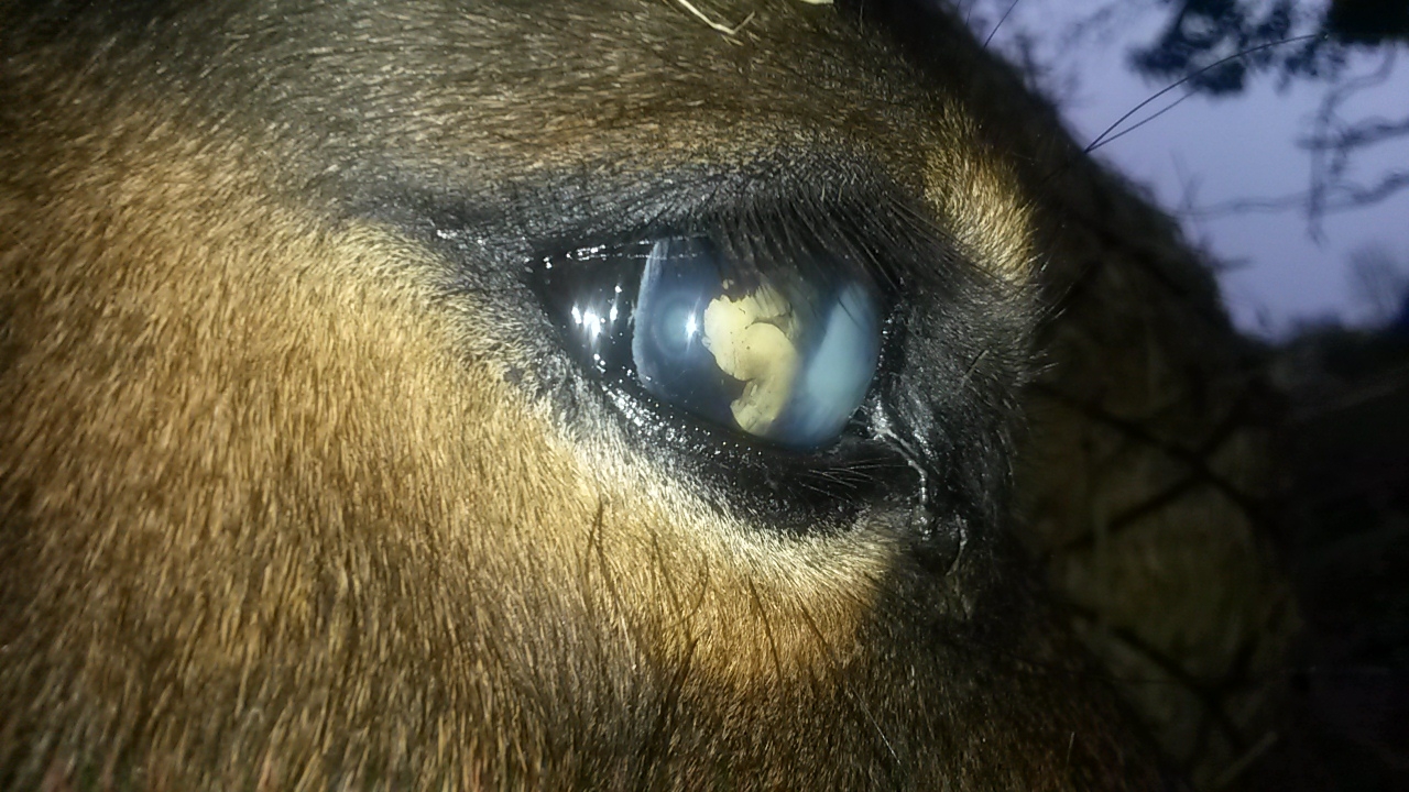 | Dire merci | Petite récap Papy de 28 ans, double uvéite récidivante depuis 2016, au pré strict et équipé depuis d'un masque anti UV . Sauf que sa vue n'a fait que baisser baisser baisser malgré les traitements ( suspendus depuis 2 ans pour " laisser faire la nature" avec accord véto) En février de cette année, il y voyait encore un peu et réagissait aux gestes brusques et a la luminosité ( panique quand on enlève le masque ) En avril, il faisait super moche quand j'ai vérifié mais il n'a pas reagi quand j'ai enlevé le masque et légèrement tourné la tête a la stimulation . Et aujourd'hui, je lui ai changé son masque pour un plus adapté pour l'été. Et malgré le soleil il n'a eu aucune réaction d'inconfort, et aucune réaction aux mouvements brusques. Les yeux sont opaques ( pas de changement depuis des mois) mais je crois que c'est cuit pour lui, il est définitivement aveugle... Bref. Est ce qu'il est encore utile de lui mettre un bonnet anti UV vu qu'il n'a plus de vue a protéger? Est ce que le soleil ne risque pas de lui reprovoquer des douleurs si je lui enlève? Avis aux proprios de petits chevaux a double uvéite aveugles ... |