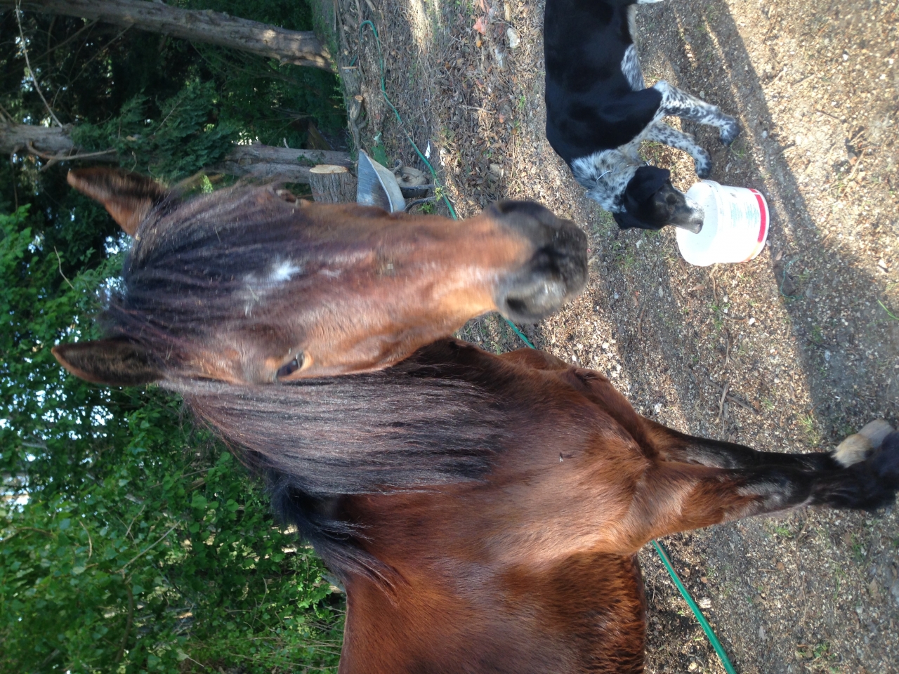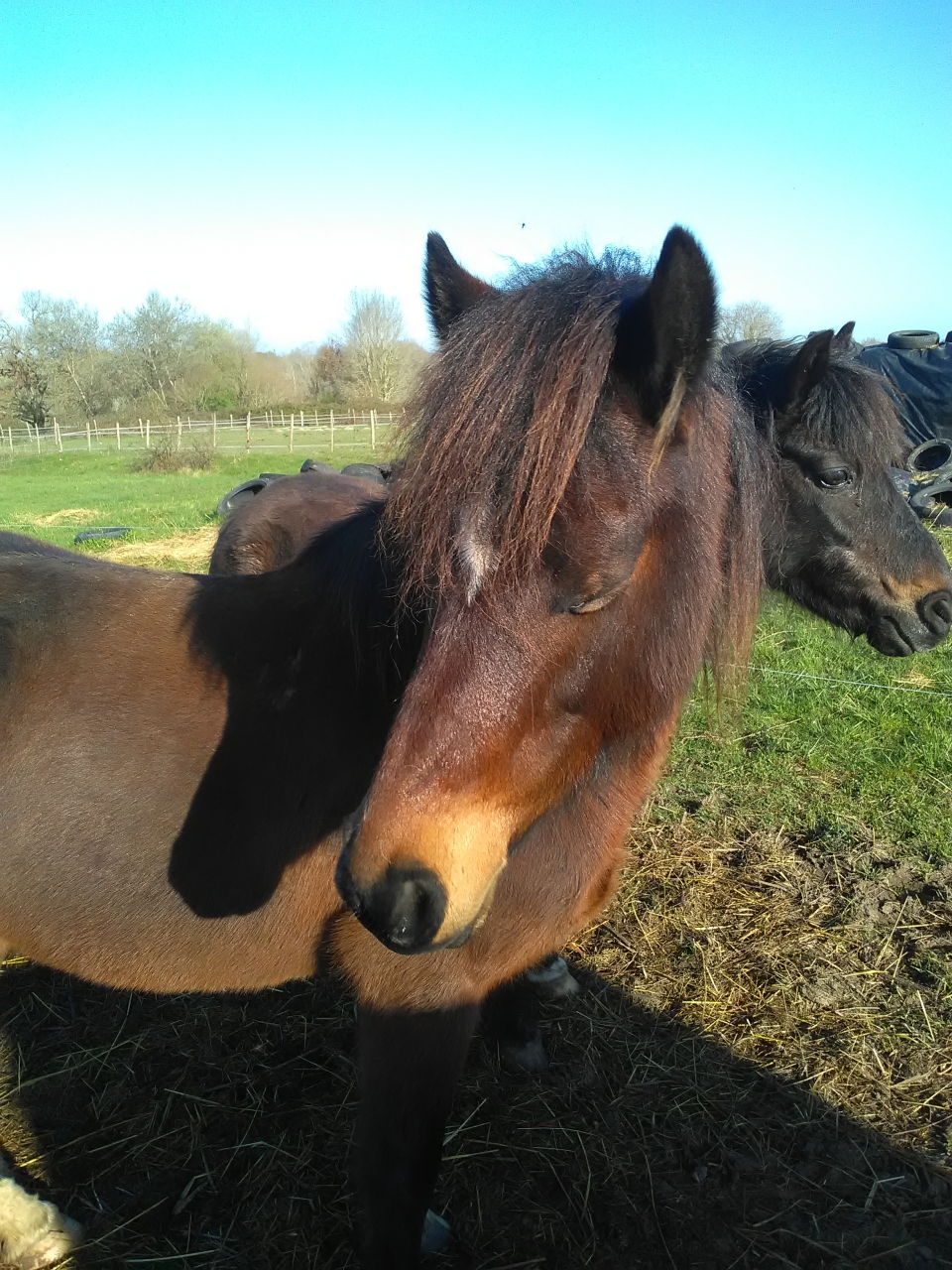 DéconnectéDire merci | Ni garrot saillant, ni dos long, conformation normale mais absence flagrante de muscles en général et d'abdos en particulier. Le dos est un peu creusé, conséquence normale du poulinage quand il n'y a pas eu de travail de muscu derrière. Mais tu la montes? Elle semble très petite quand même, plutôt une ponette pour un jeune enfantnque pour un adulte non? Pour la remuscler, vu que moi je ne me verrais pas monter dessus, je le ferais en longe , en terminant par de très courtes périodes en rênes fixes en fin de séance (5 mn à chaque main pas plus ). Les longues rênes peuvent être utiles aussi. |