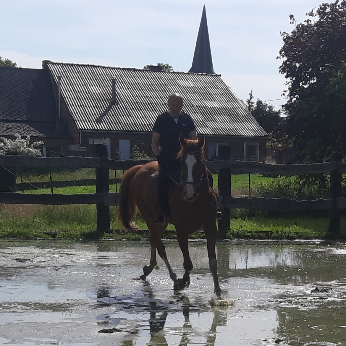| Dire merci | Chez nous le manège est sciemment inondé une à 2 fois par an, pour s'assurer du bon nivellement... parce que là où ça stagne = creux ! Si jamais t'as besoin d'une excuse un jour |