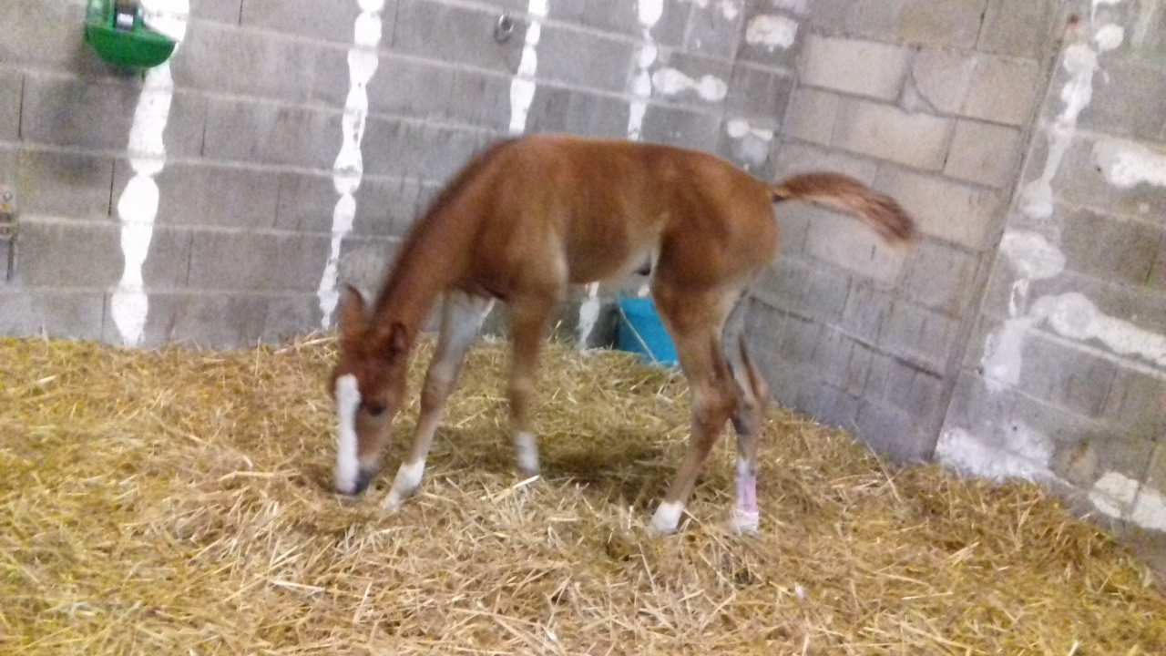 | Dire merci | Je ne sais pas. Il y a du mieux sur certains poitns et d'autres où je trouve du moins bien. La plaie : elle est plutôt belle. Les points ne servent psu à grand chose, ils sont tous lâches, 2 sont parti d'eux même. Je suis mon intuition : je change les pansement matin et soir, pour bien contrôler la plaie. Hier matin, j'ai pans changé le pansement pour voir et arrivé à 24h comme précaunisé par la véto : c'était pas jojo en surface, pas simple d'identifier ce que c'était, je dirais fibrine coloré en jaune par le miel? Le membre : globalement, il désenfle mais reste enflé Applombs : ca ne se redresse plsu du tout, il continue d emarcher sur les glômes et de ne pas poser en pince, j'attends le rdv du 5 aout avec la véto mais je pense que la case "M-F" est à prévoir raidement (elle m'a indiqué pas avant els 2 mois du poulain et quoiqu'il en soit, attendre cicatrisation de la plaie) Boiterie : c'est là où je trouve que ca stagne. Il y a des moments où il pose bien le pied; Mais après avori fait le foufou dans le boxe ou après changement du pansement ou après petite marche à pied tenu en main (on parle de 2 minutes un jour sur 2), il boite plus. Forme : il porfite super bien. Il grandit bien, est beau, beau poil. Il joue bc, le tout dans un box de 15m² : (sliding stop dans le box, galop autour de la mère (donc cercle de 2m de diamètre), cabrage contre la mère, ruades et j'en passe). Actuellement, il a : - antibio matin et soir -renouvellement du pansement matin et soir Je vous fais des photos tout à l'heure. |