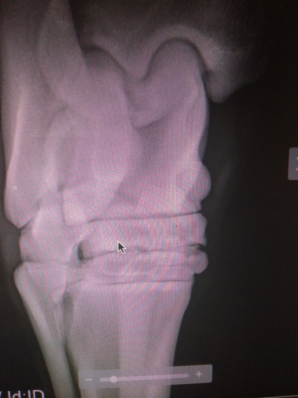 DéconnectéDire merci | l histoire en bref c est que quand le cheval est arrive, je l ai fait parer et il a montre une forte sensibilité et boiterie d un antérieur qui s est bien estompée au bout de quelque jour, du coup, j ai envoye les rx a un veto avec lequel je travail qui m a indique la présence d arthrose au niveau du jarret droit. Le veto de la visite d achat (qui est a 800 km) me dit que non...les radios sont les deux du meme jarret |