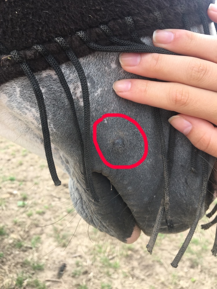 DéconnectéDire merci | Bonjour à tous, alors voilà je viens de m’apercevoir que mon cheval a une petite boule dure au dessus de la commissure des lèvres. Ça fait comme une sorte de bouton, mais ça n’a pas l’air de le gêner. Je me suis demandée si ça n’etait pas un sarcoïde, mais ça n’a pas trop l’air d’y ressembler. Peut-être une piqûre d’insecte, ou alors un mélanome..? Je pense que si d’ici quelques jours cela ne disparaît pas, je contacterai le vétérinaire. Alors voilà je voulais savoir si par hasard quelqu’un avait une idée de ce que ça pourrait être ? Merci ![]() |