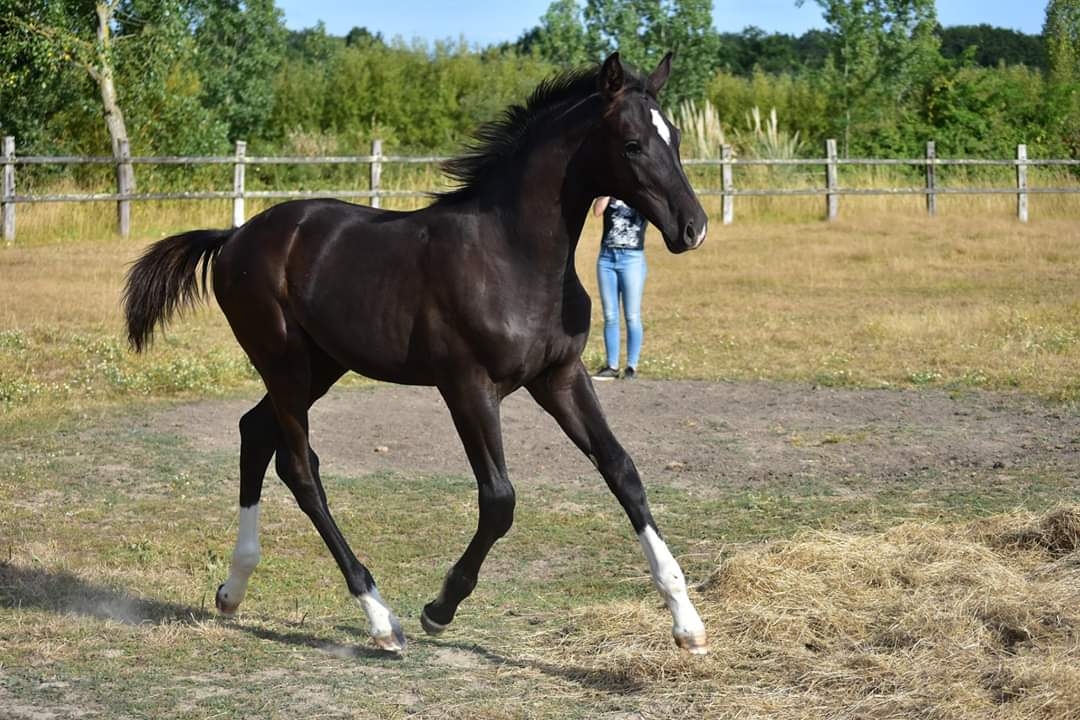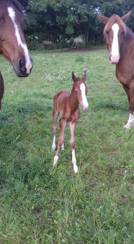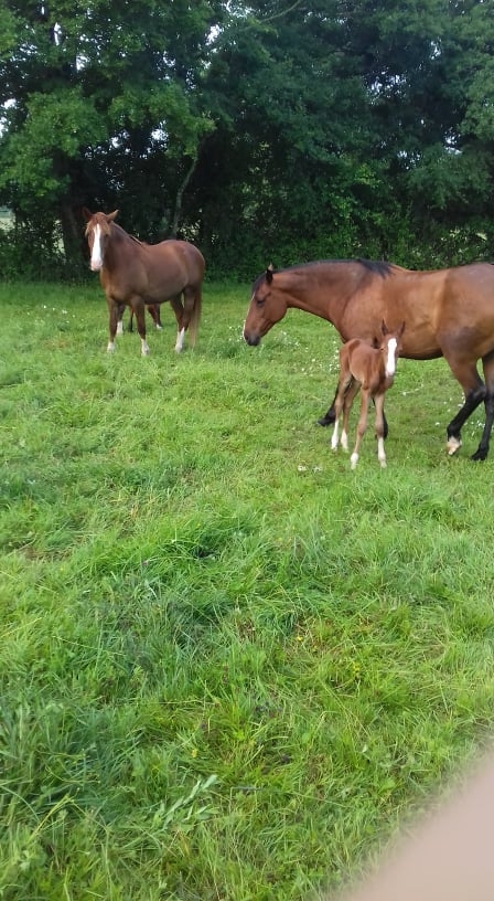 | Dire merci | Du coup, j'entame le bal avec mon J : Jagger du L•••••, OC avec des papiers pleins d'Allemands et d'Hollandais. Il est né le 28 mars 2019 et se démarque par sa grande douceur et ses jolies allures. Il est encore chez son éleveuse. IL sera destiné au dressage amateur et plein de bêtises , comme son grand frère ![]() ![]() ![]() |