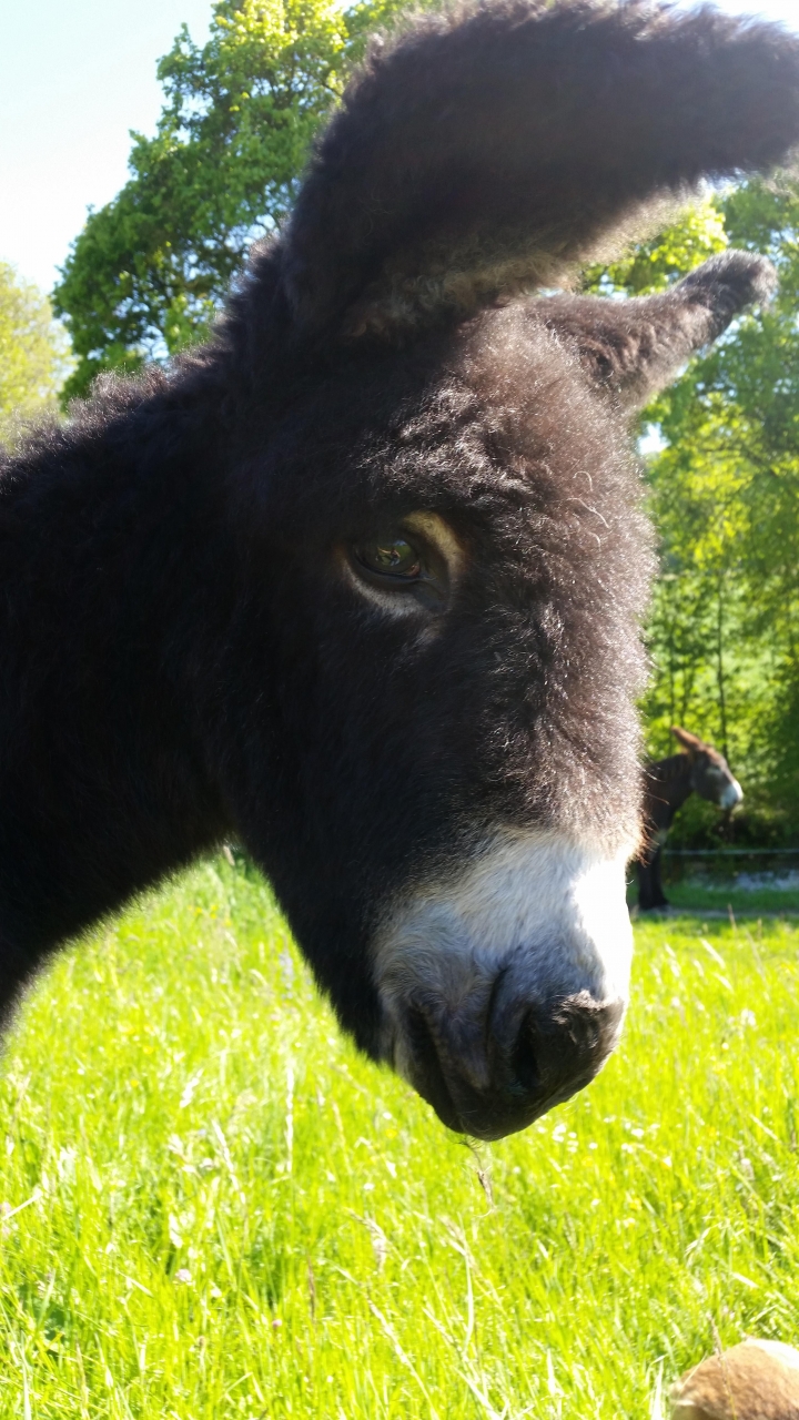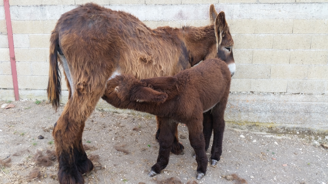 | Dire merci | cici l'ânesse qu'elle tête est ma meilleure ânesse, elle est extrêmement maternelle, du genre à vouloir piquer les ânons des autres mères (je laisse minimum 1 semaine l'ânon qui vient de naître qu'avec sa mère pour éviter les quiproquos), elle est vraiment faite pour ça (en plus d'anoner toute seule, d'être une grande laitière et de transmettre son caractère en or). C'est sûr qu'en cas d'orphelin la nounou est toute trouvée ! |