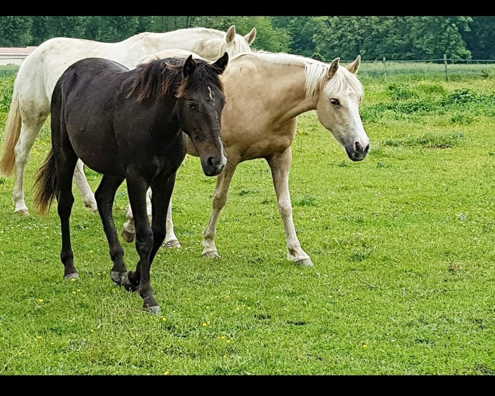 | Dire merci | Je me joins au club des I qui ont l'air d'être quasiment tous des tachus Au moins, je ne ferai pas tache Je vous présente QTS Isha Primrose, poulain Paint Horse PP grullo tobiano né en avril 2018. Avec lui, je souhaite progresser en équitation western, faire des balades et des rando. Avoir un cheval bien dans sa tête notamment pour être manipulé et monté aisément par mon mari et sympa avec les enfants. Ayant déjà un jeune enfant (14 mois) et un autre en route pour décembre, je ne me voyais pas gérer un entier. Il a donc été castré le mois dernier. J'espère que ça n'influencera pas trop sa morphologie : j'aime les petits chevaux bien baraqués ![]() J'ai dû changé son nom de naissance qui était trop près de celui du chien… C'était un peu le bronx… Donc, maintenant en non officiel, il s'appelle Iliade. Comme nous habitons près de Troyes, c'est cohérent : Iliade, le Cheval de Troyes Place aux photos, j'essaierai d'en prendre d'autres, plus belles, prochainement. ![]() |