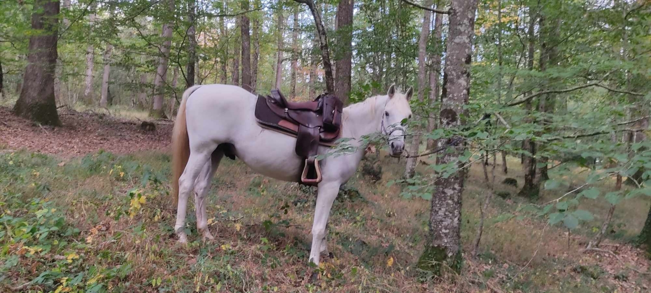 | Dire merci | Super colomba , pour IP, on a repris 4 a 5 séances a pieds par semaine, dans ces séances, on peut sortir en promenade vers les vaches (elle était hystérique devant les vaches il y a 6 mois), faire du travail en longe notamment bcp de transitions. Ca se passe bien, elle repart nickel au trot et les transitions sont de plus en plus fluides. Cependant -et je pense que c'est normal comme j'ai beaucoup travailler sur la marche avant- on a de moins bons arrêts. Donc je recommence à demander des arrêts fréquemment. En tous cas elle s’énerve moins, et est vraiment plus gentille, elle ne devient plus colérique pour un oui ou un non. Tout a changé, son attitude aussi, je veux dire par là que mecaniquement son encolure va mieux, c'est plus joli . Une photo d'elle en tenue classique: ![]() |